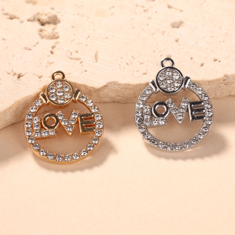 厂家直销英文LOVE吊坠logo合金镶钻Diy手链项链饰品百搭挂件配件
