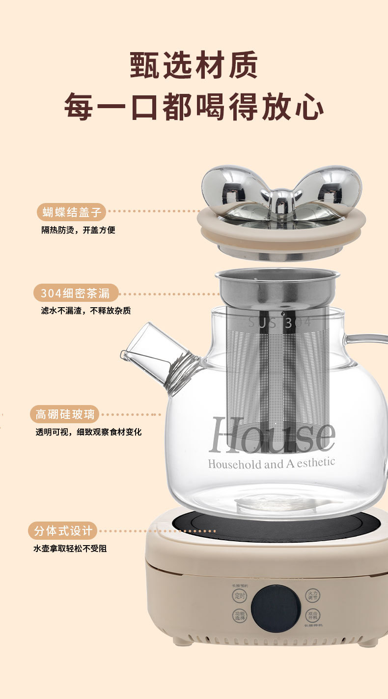 新款养生壶煮茶壶多功能全玻璃高硼硅恒温分体式养生壶电器礼品