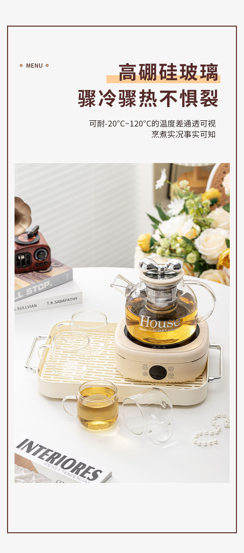 北欧多功能电陶炉养生壶烧水壶玻璃茶具耐高温家用煮茶壶礼盒套装