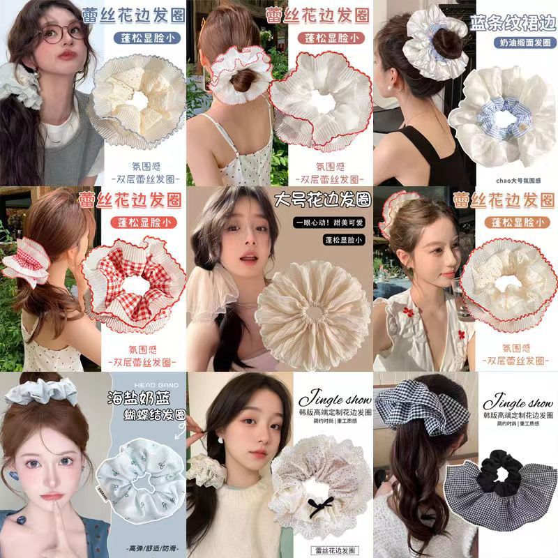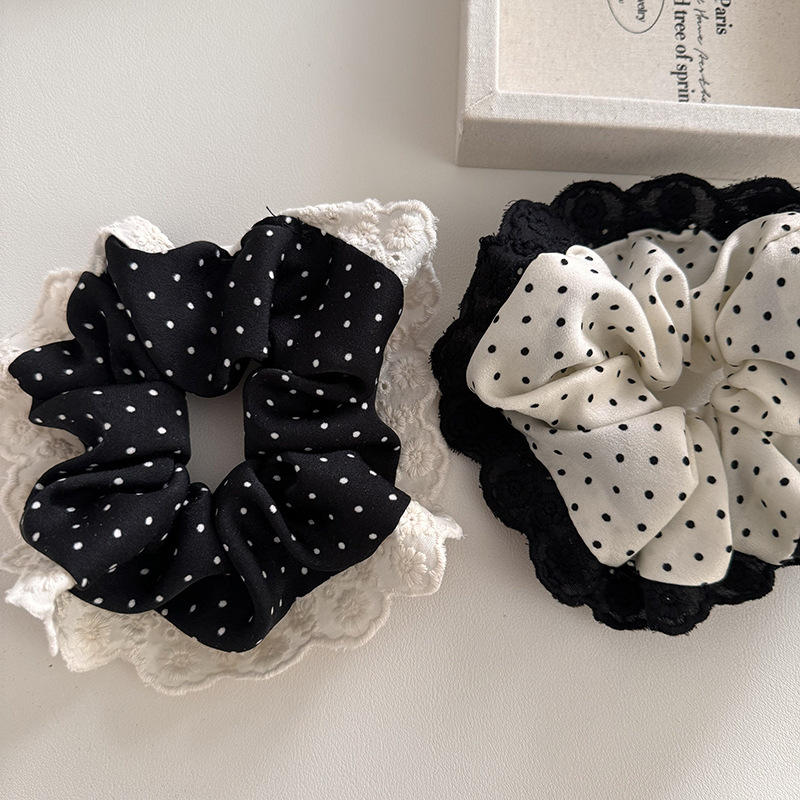 オーバーサイズ16cm韩国オンニ大肠ヘアリングレディース波点レースエッジ高级感ヘッドロープ髪饰り