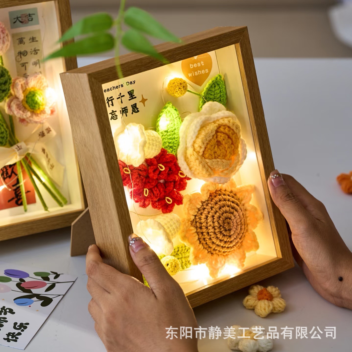 中空标本相框毛线编织花手工向日葵钩针干花画框摆台送教师节礼物