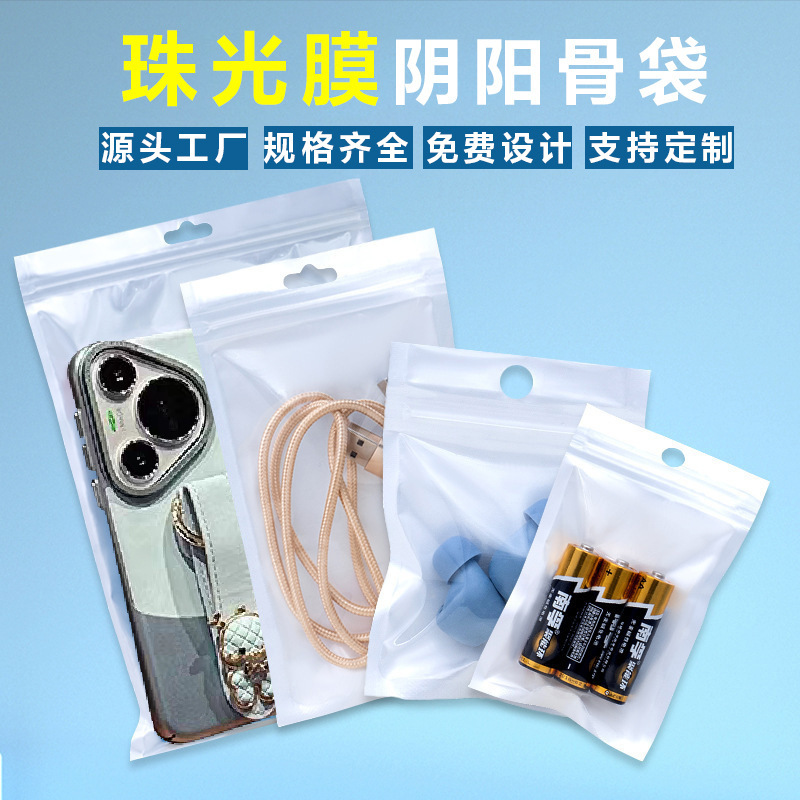 真珠光沢のあるフィルム陰陽骨袋白ジップロック袋半透明プラスチック密封袋携帯電話ケースジュエリー包装袋卸売
