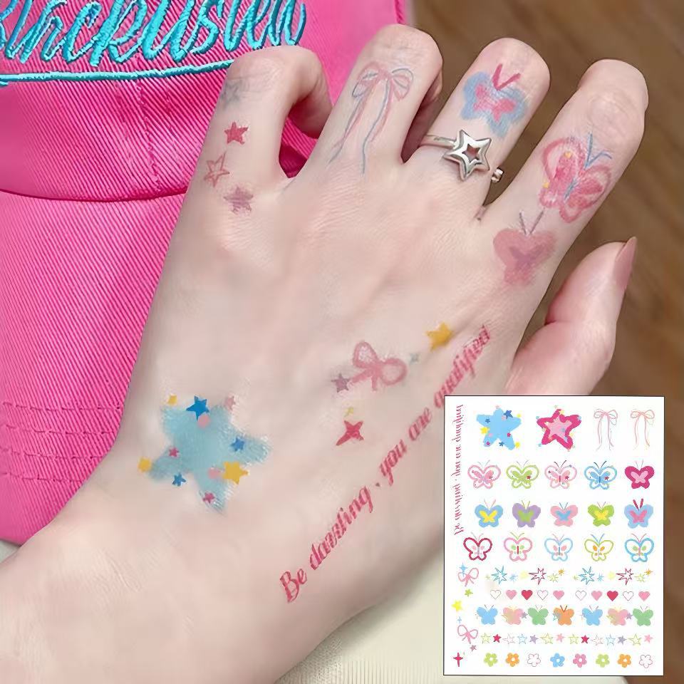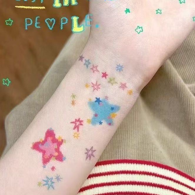 爆発的な夏の星のカラーの花の腕の刺青はinsドーパミンのかわいい少女の心の防水の持続する学生を貼ります。