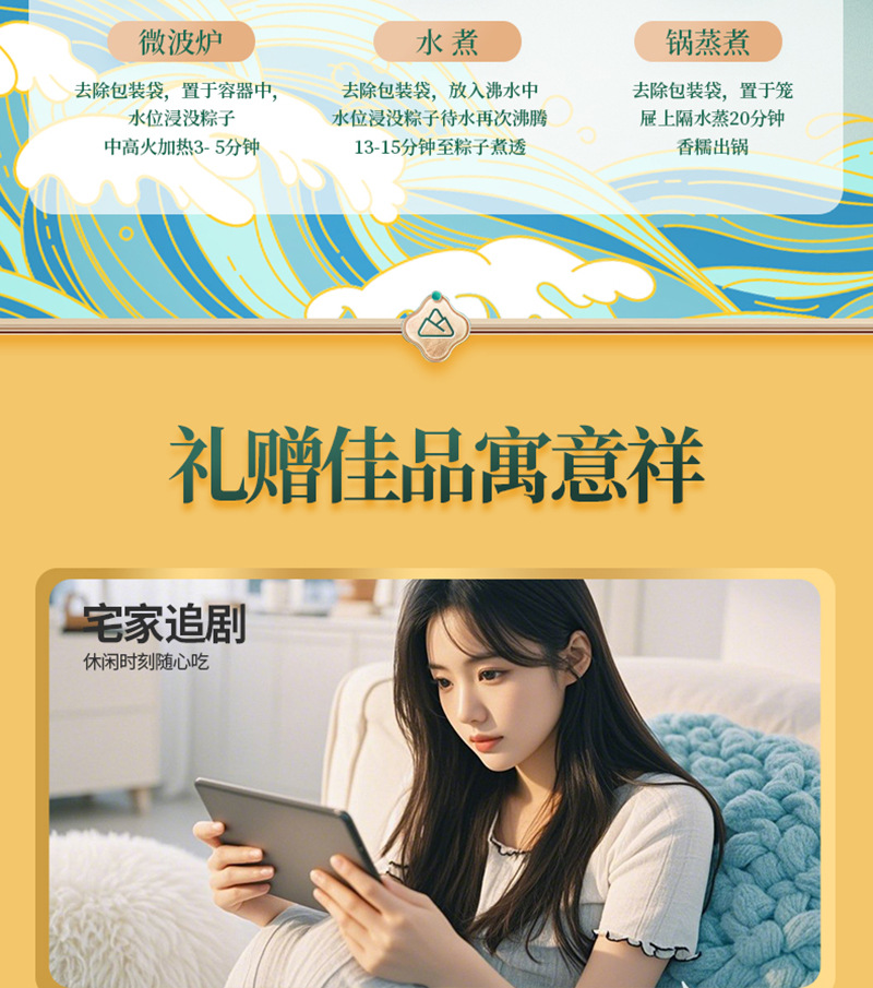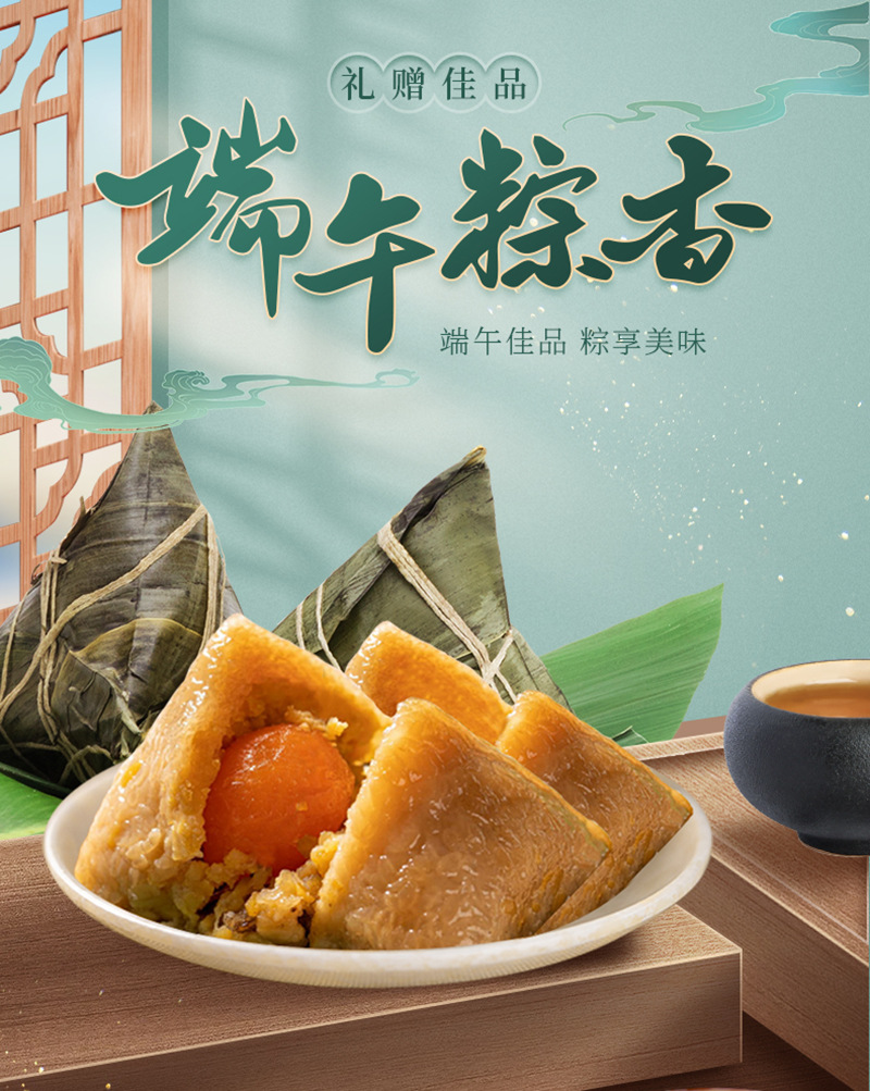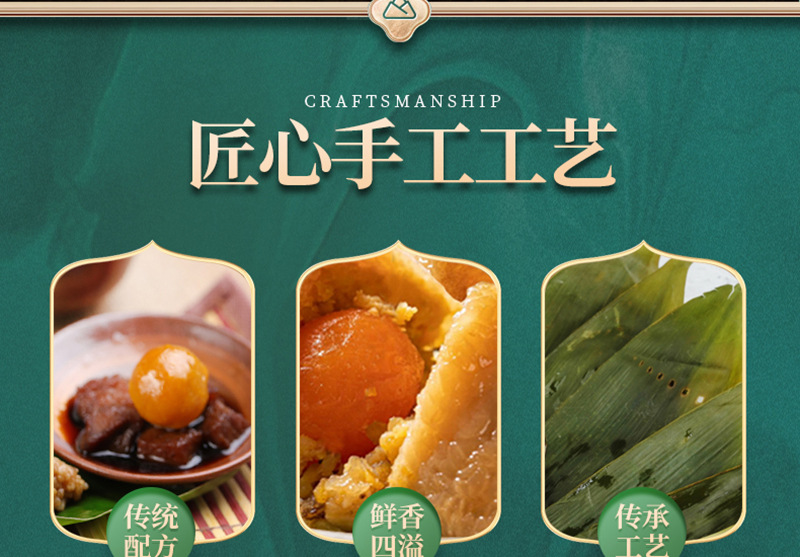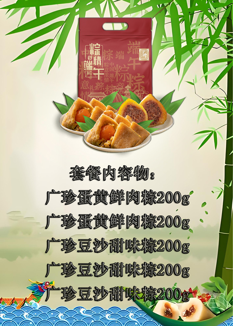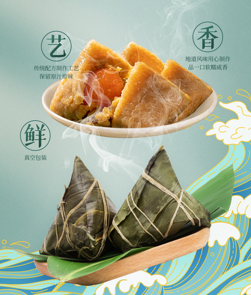 広珍越韻飘香粽ギフトバッグ1000g 広東名物 熱めて食べるだけの端午節の卵黄肉粽 生肉粽