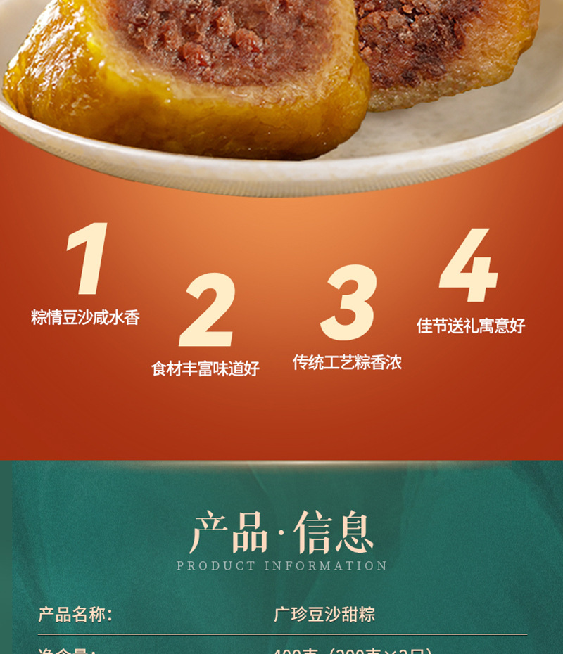 広東豆沙団子 200g*2 広東名物 加熱してすぐに食べられる端午節豆沙団子 個包装