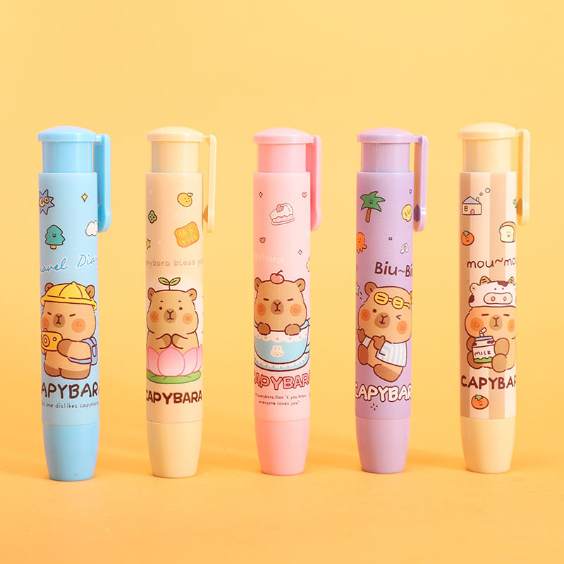 プッシュ式消しゴム 漫画柄 かわいい 小学生 幼稚園文具 子供のご褒美ギフト カード カピバラ