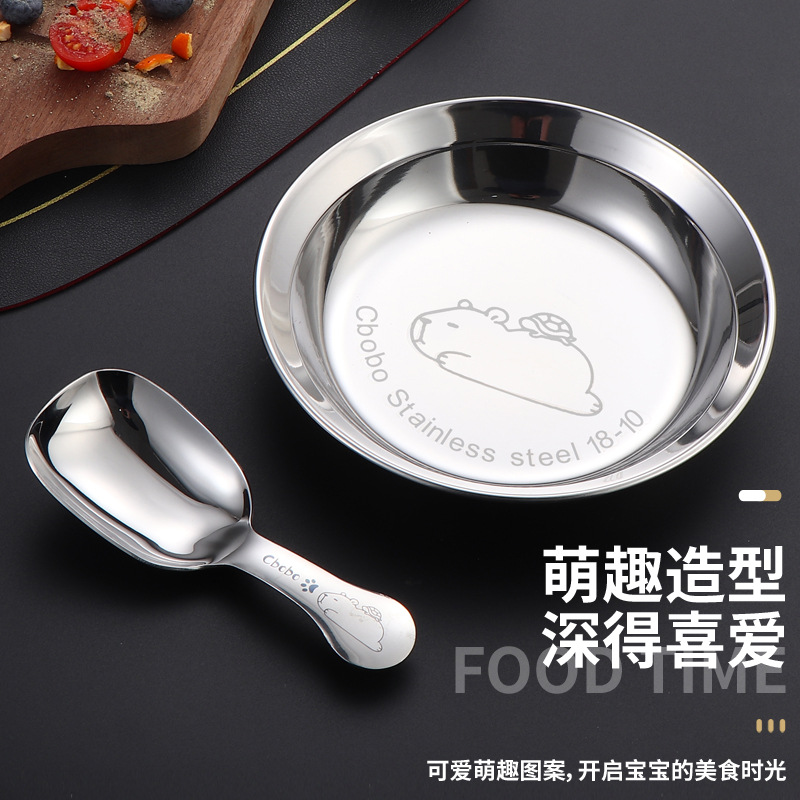 18 - 10 ステンレス鋼ミニ子供用スプーンプレート漫画家庭用プレート食品グレードの厚く深く丸いプレート