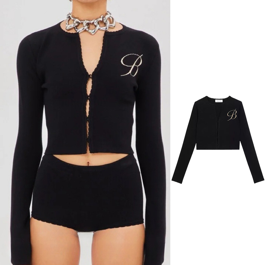 Blum@rin*小众设计法式高级感辣妹花边刺绣华夫格钩扣针织开衫女