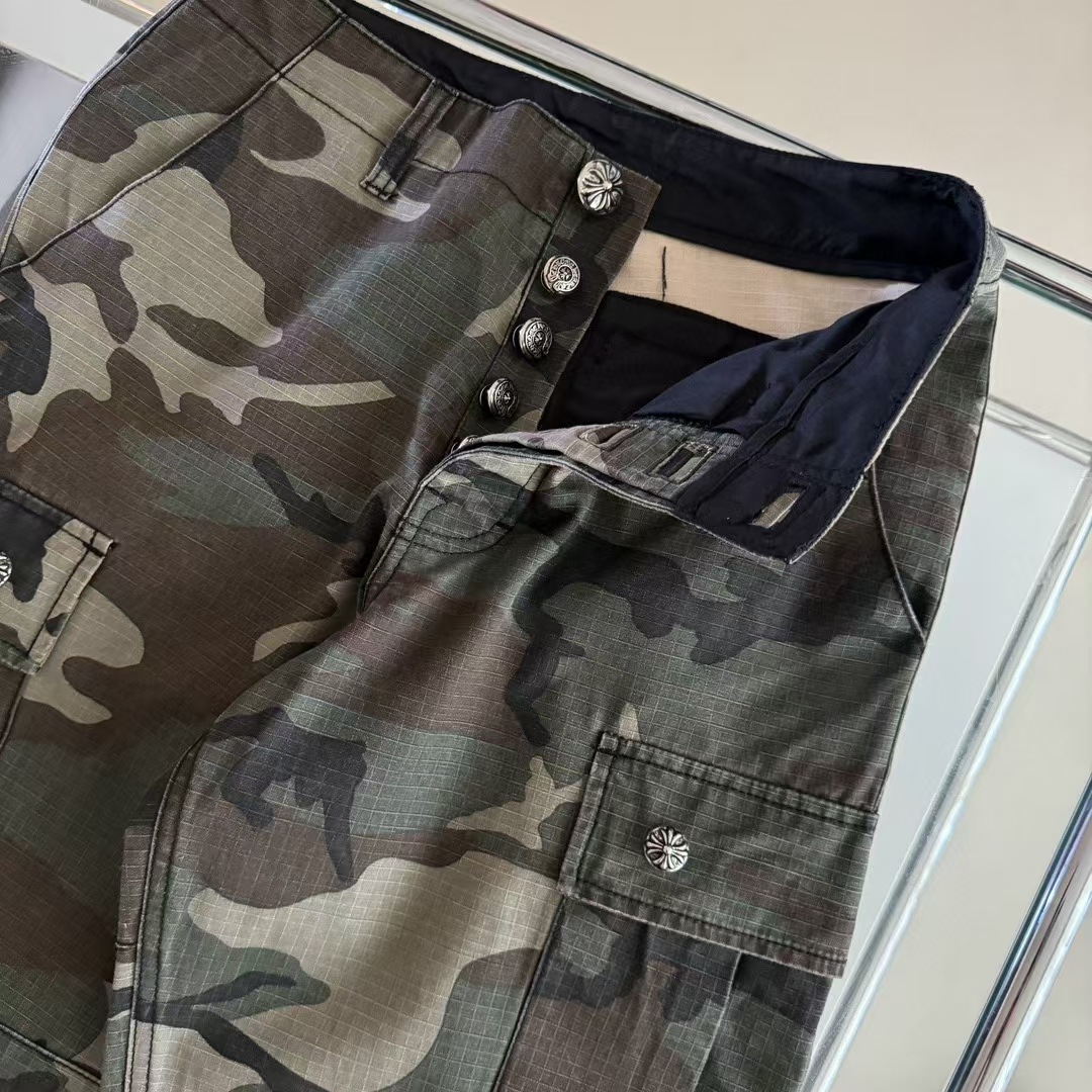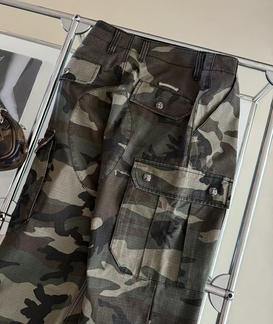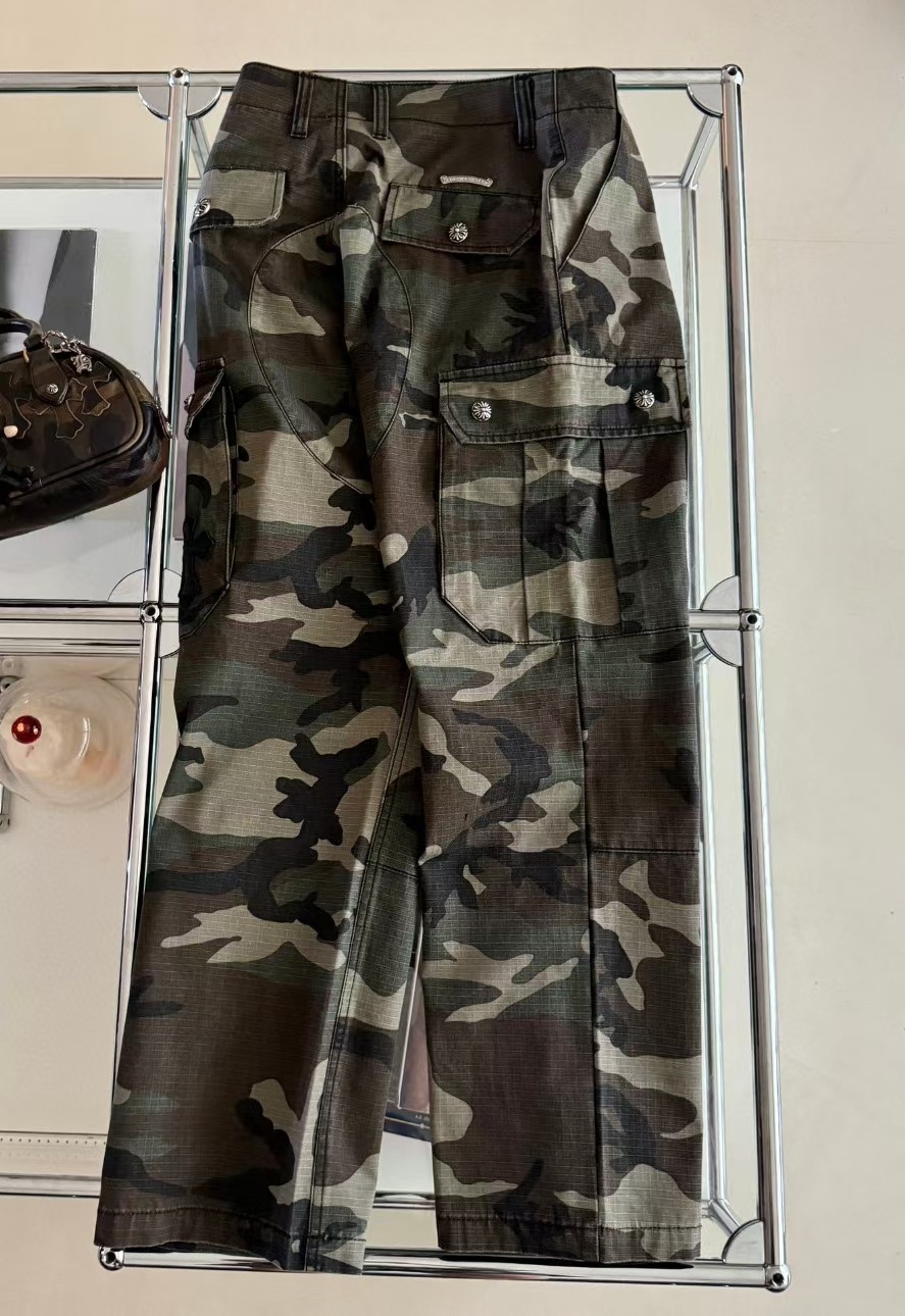 2025ssグラムの新しいアメリカのギャルの復古の工装のズボンの高い腰の広い足の十字の大きいポケットの迷彩のズボン