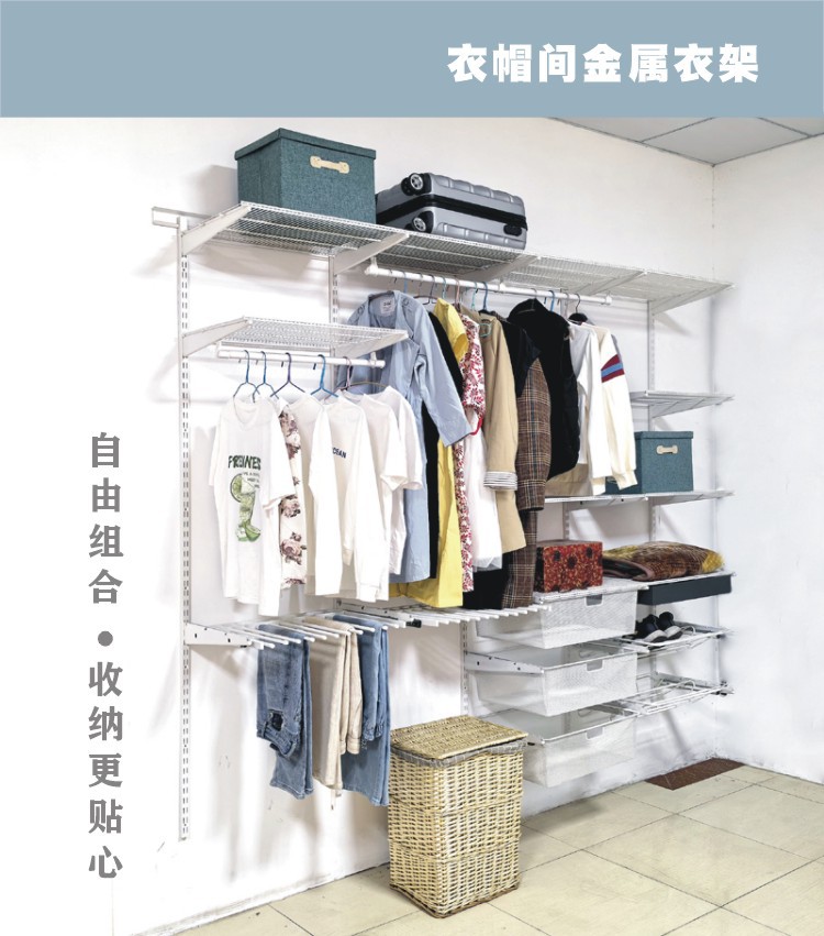 ウォークインクローゼット水平レールと垂直レール金属製ワードローブアクセサリーA柱壁掛け収納ラッククロークスチールフレームカスタマイズ