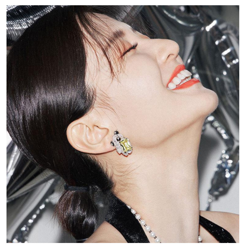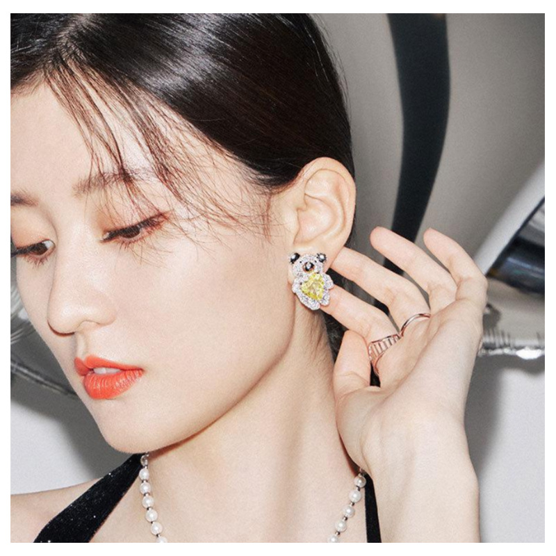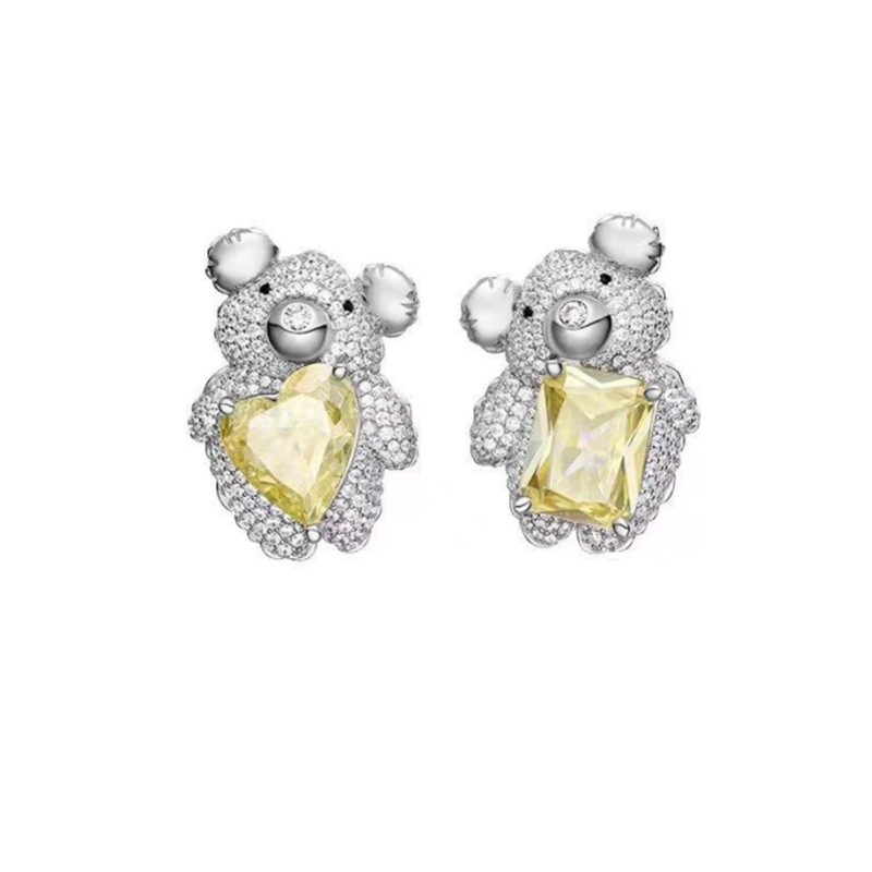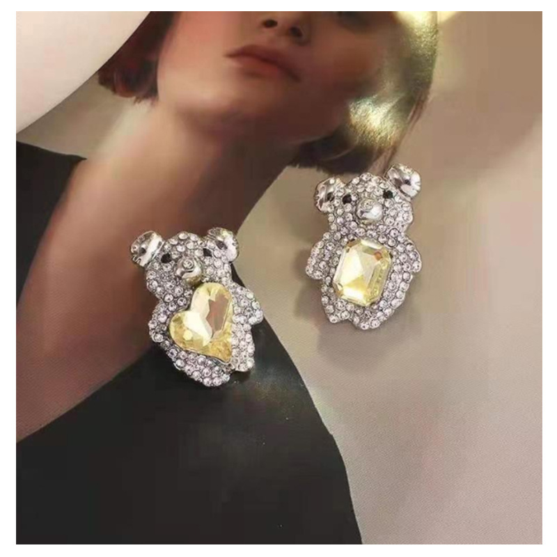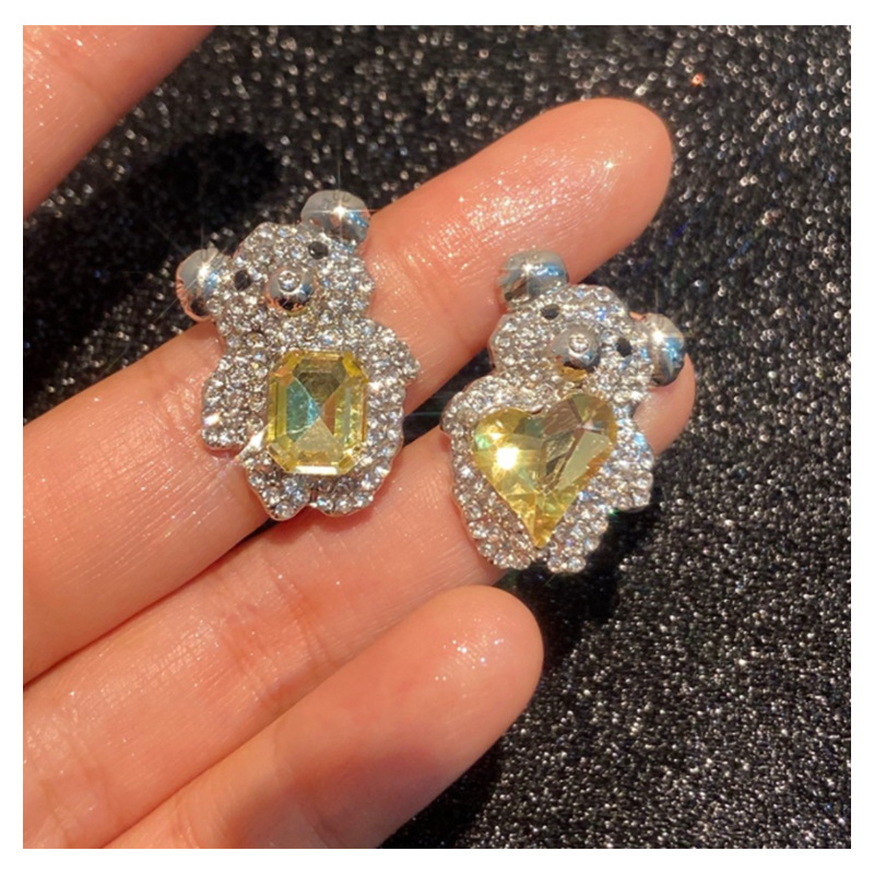 Qiao Xin の同じ S925 シルバー針ブルークリスタルラブベアイヤリング女性のクールなスタイルの甘いイヤリング
