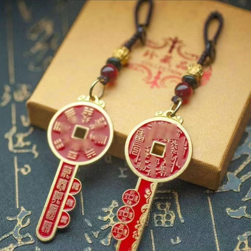 山の鬼辰砂金の鍵 山の鬼八卦キーホルダー 福、富、寿の男性と女性のポータブルペンダント [裸アクセサリー]