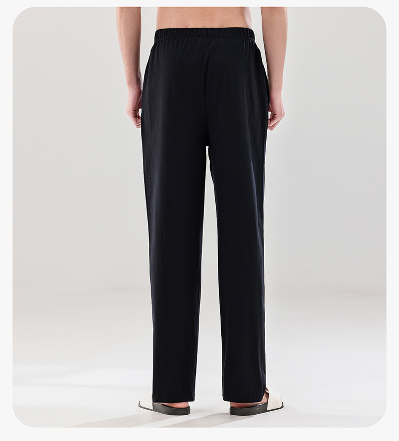 100% 純綿男性寝ズボン春秋純色シングルパンツゆるいカジュアル綿パジャマ青少年ホームウェア