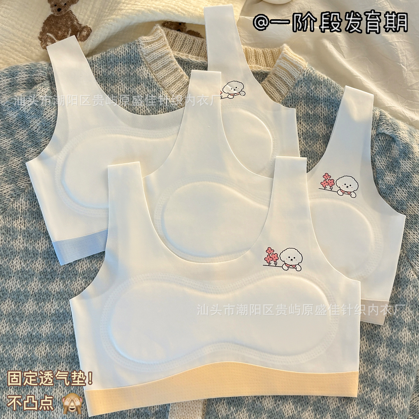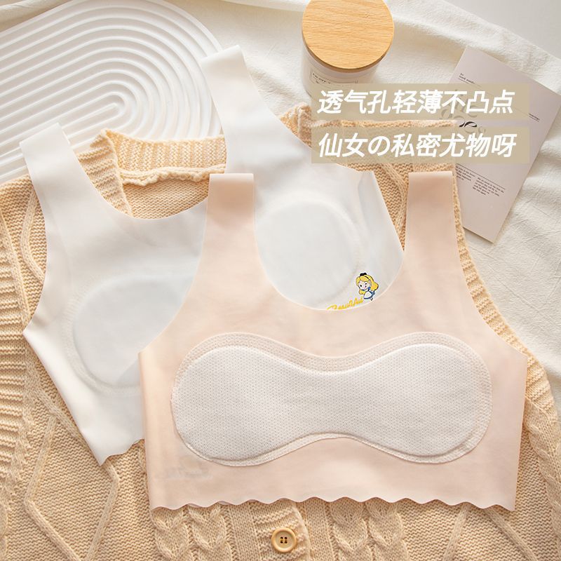 固定カップアイスシルクベスト女の子発育期ガールズブラジャー女子小学生6-12歳女の子薄型スタイル