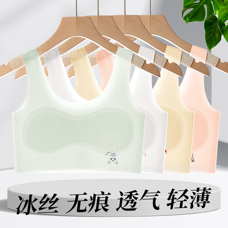 9歳から12歳の女の子向け、発育期の夏用ブラジャー、アイスシルク素材のシームレスな小さめベスト、学生用ブラ、子供用下着