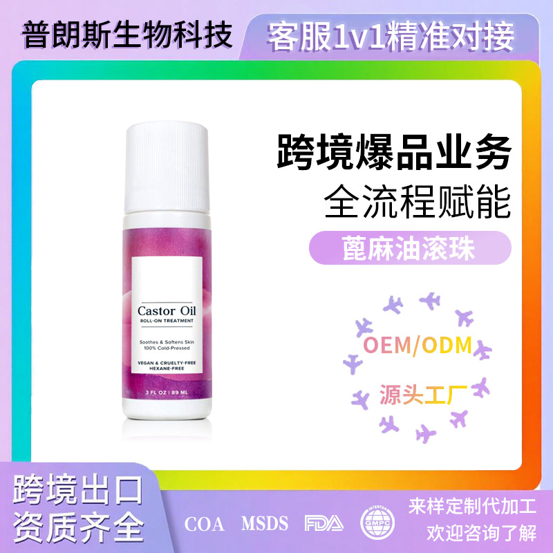 TikTokで話題沸騰中のクロスボーダー人気商品、ヒマシ油ロールオンマッサージオイル。肌に優しく保湿効果のあるロールオンオイル。カスタムオーダーも可能です。