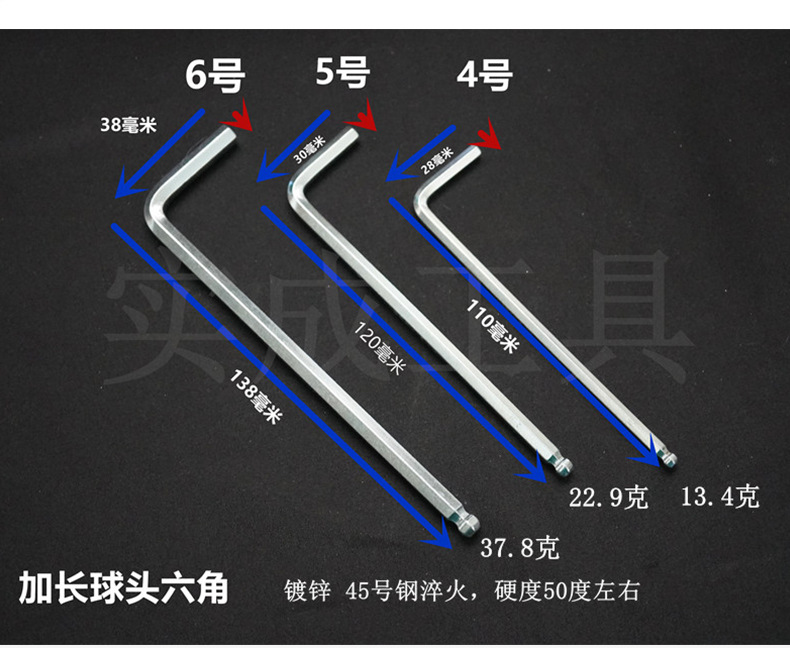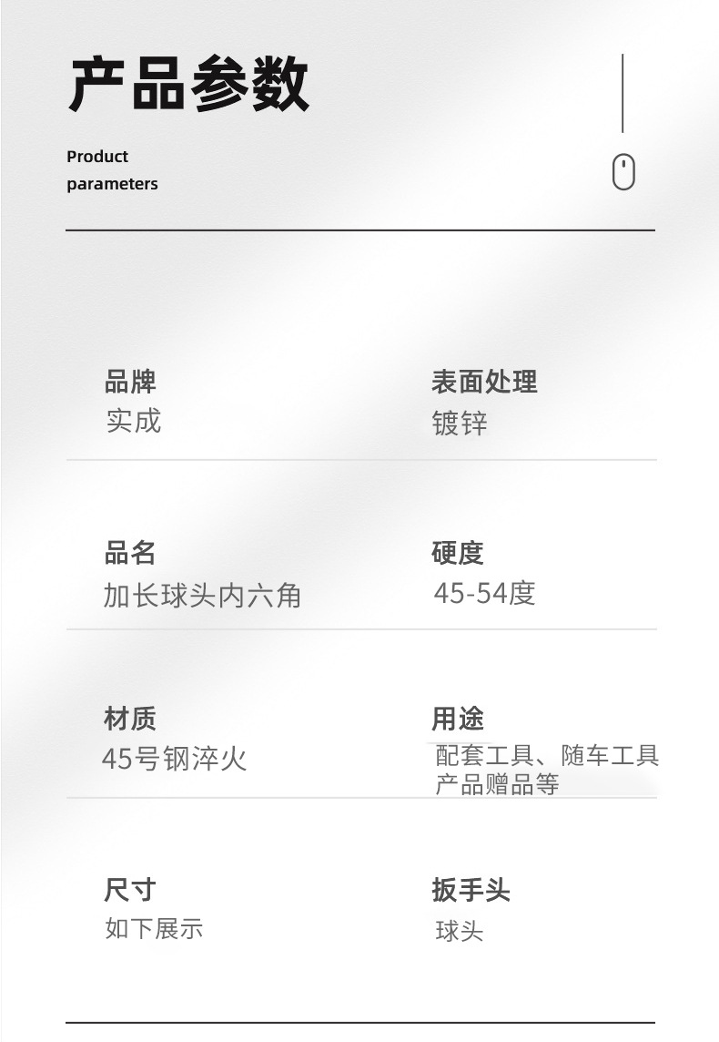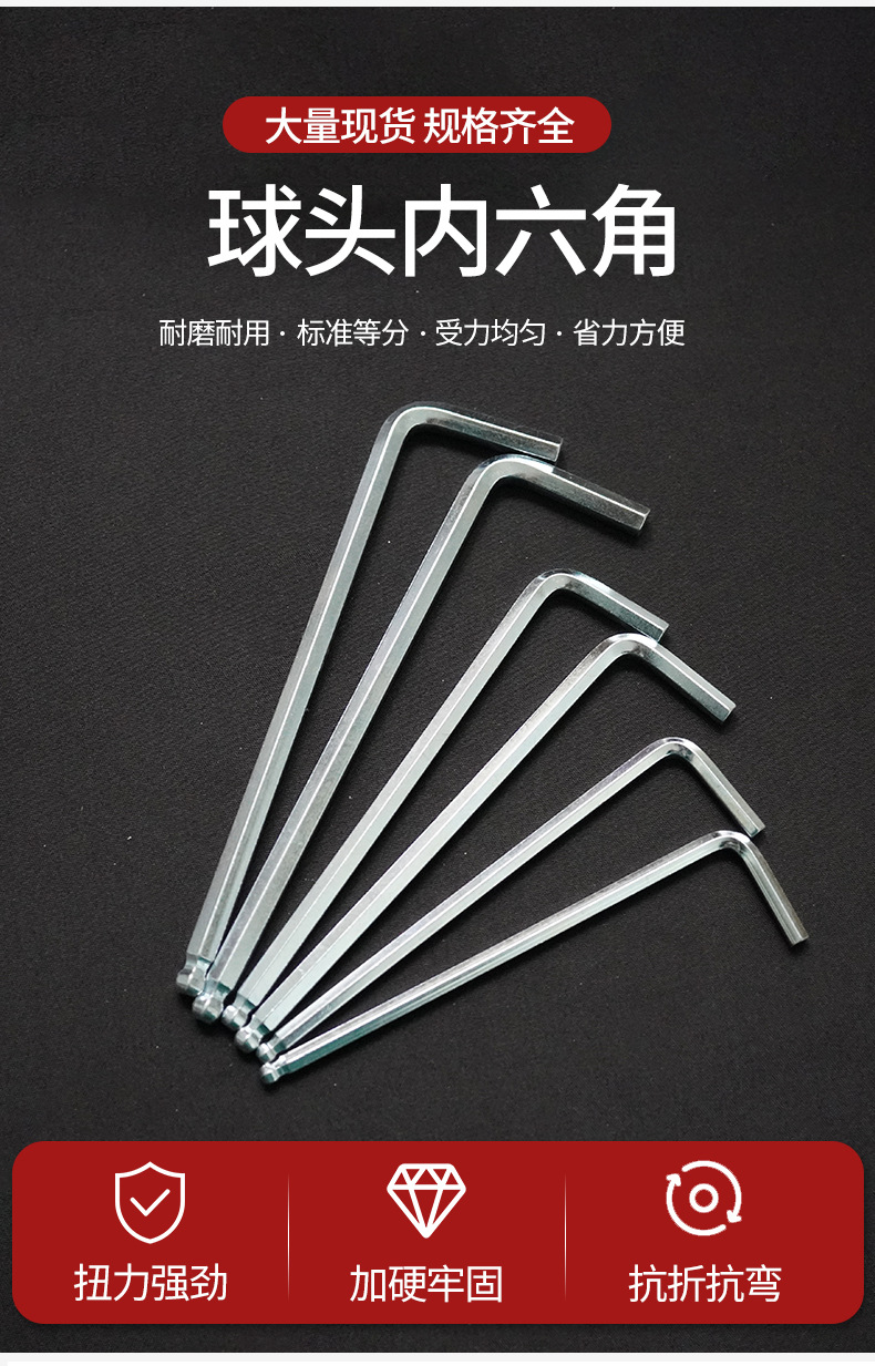 メーカー直供L型ボールヘッド内六角スパナボール型スパナ六角スプーン45号鋼焼入れ亜鉛メッキハード