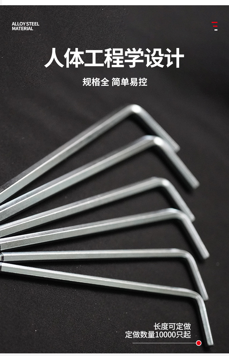 多规格内六角扳手高强度L型平头球头六棱扳手非标尺六角匙套装