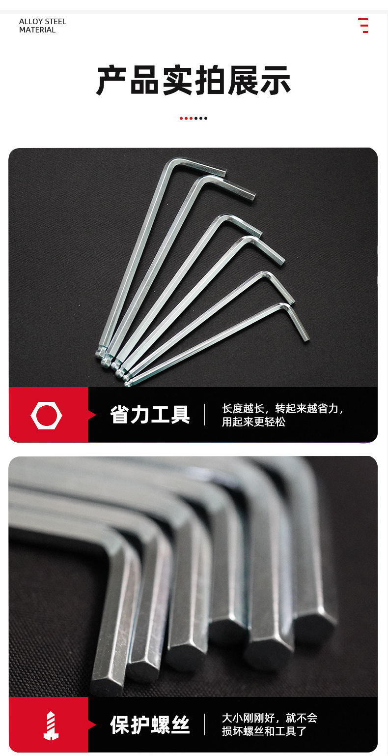 メーカー直供1.5番から12番までの熱処理ハード亜鉛メッキ内六角増力レンチ