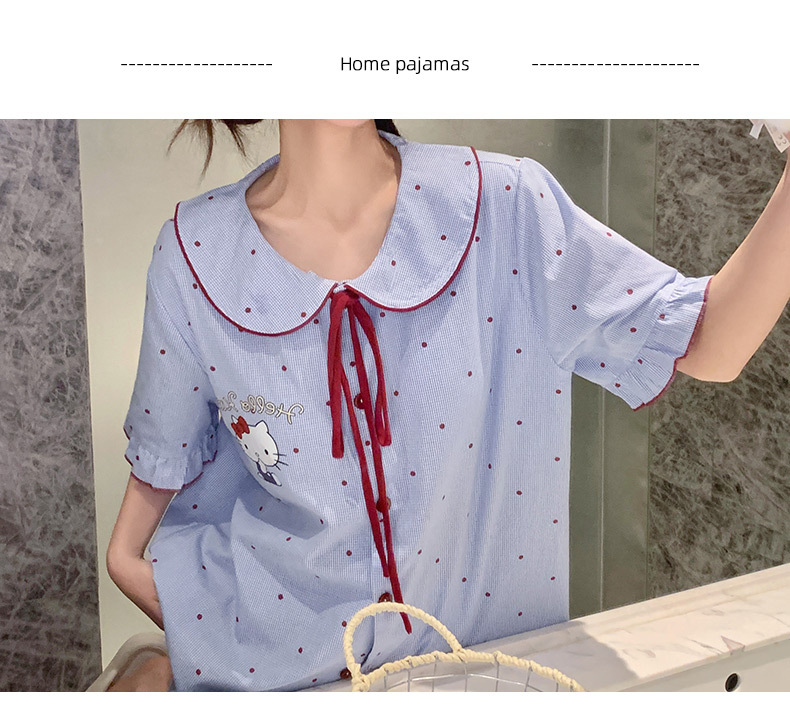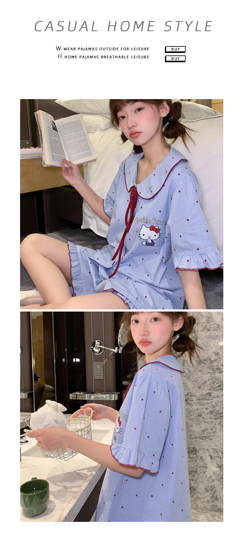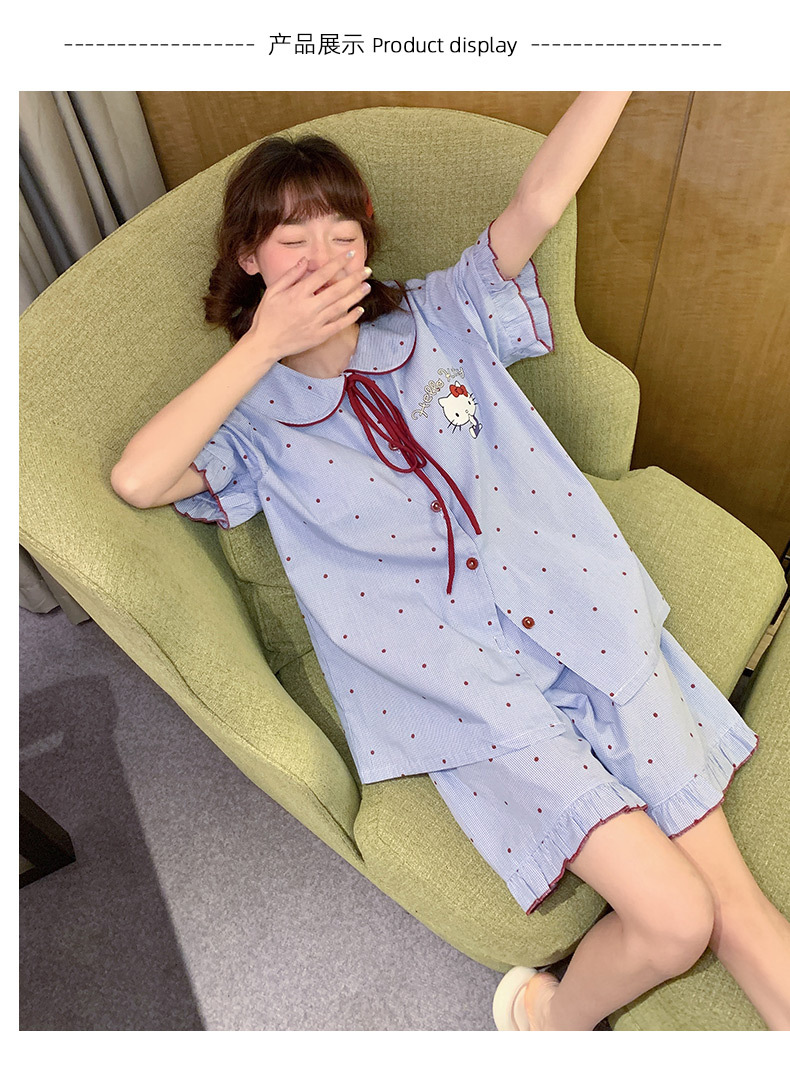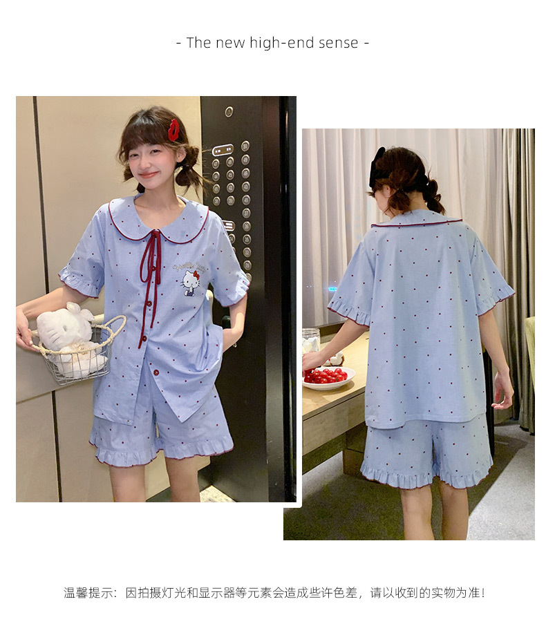 パジャマの女性の夏の純綿糸の布は胸のパッドの半袖の半ズボンの子供の襟のかわいい漫画の甘い家の服のスーツを持ちます。
