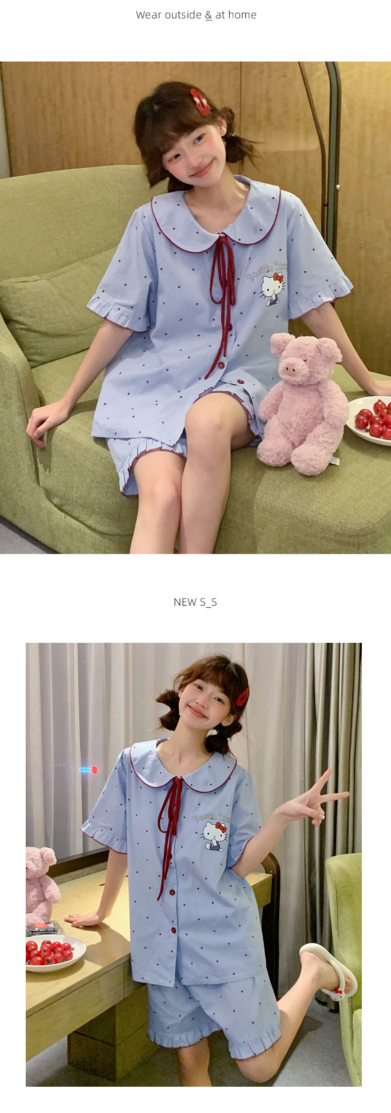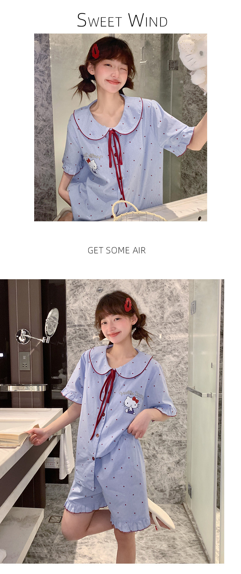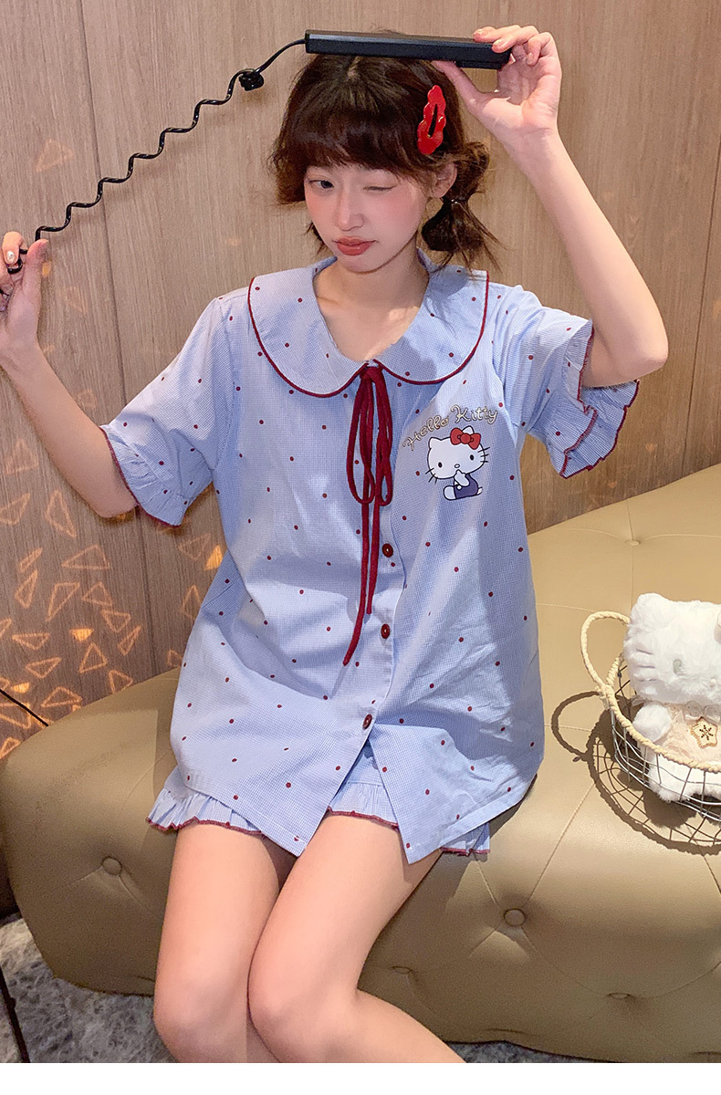 パジャマの女性の夏の純綿糸の布は胸のパッドの半袖の半ズボンの子供の襟のかわいい漫画の甘い家の服のスーツを持ちます。