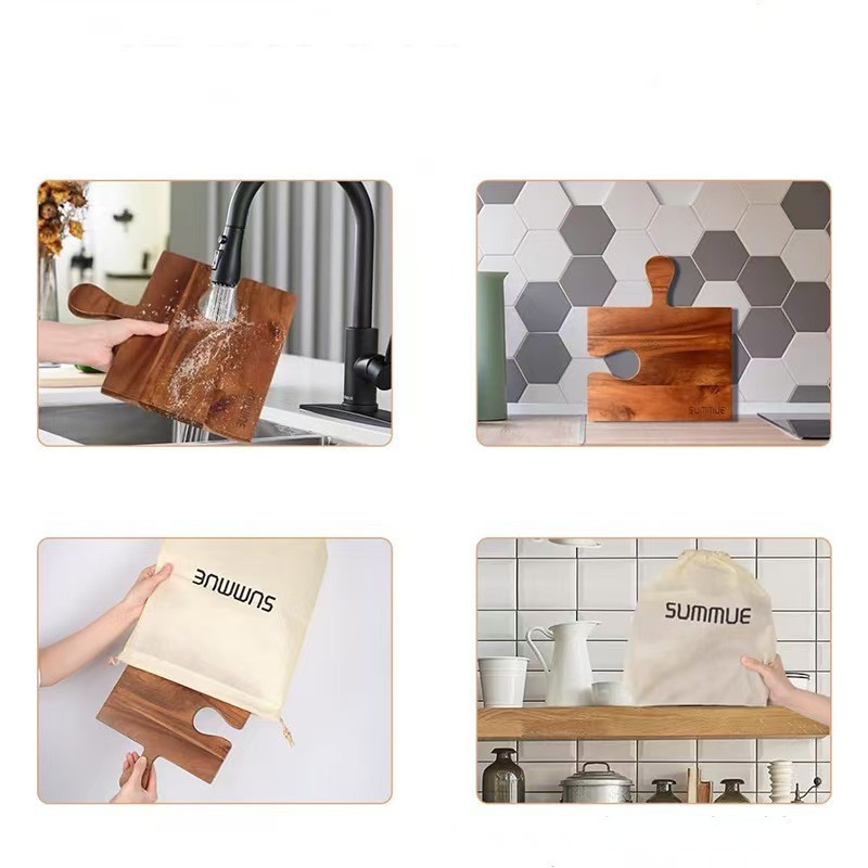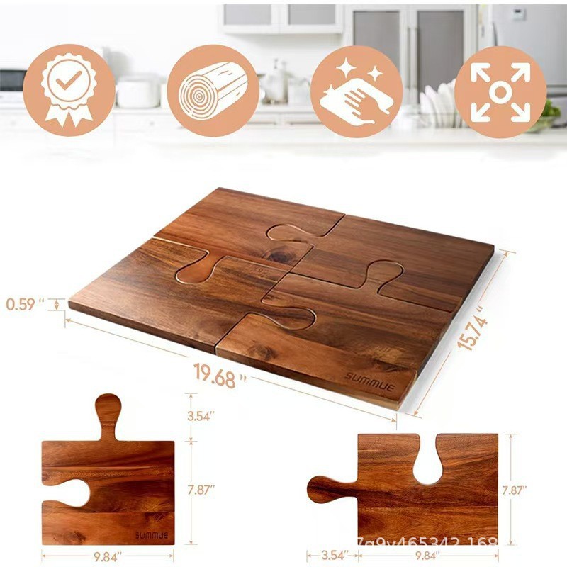 クリエイティブ木製まな板パズルまな板家庭用アカシア材熟した食品ワイングラストレイフルーツチーズまな板ハンドル付き