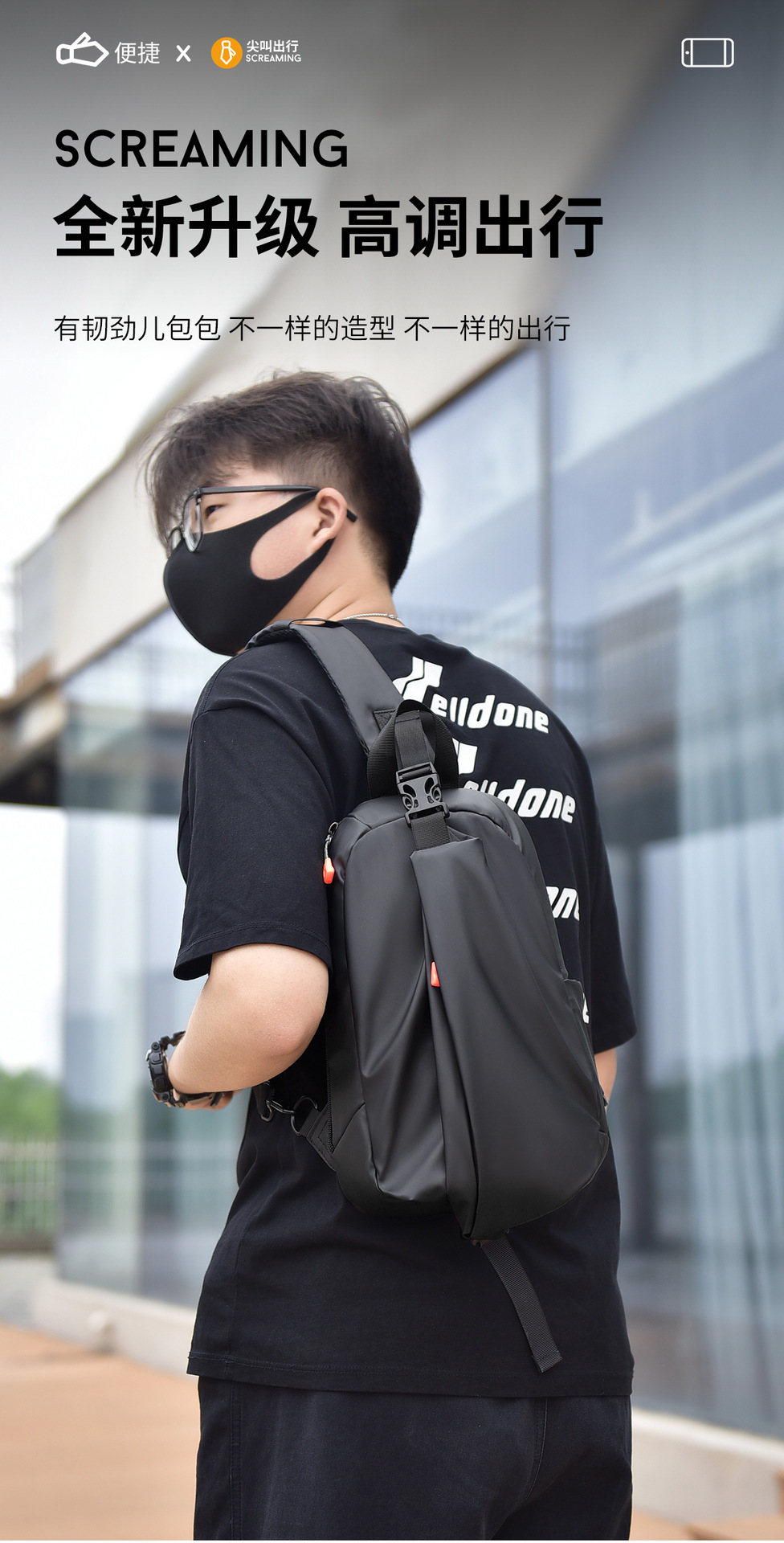 男性用胸バッグカジュアル大容量シングルショルダーバッグ韓国版機関車バッグ水かけ防止リュックサッククロスボーダー新型