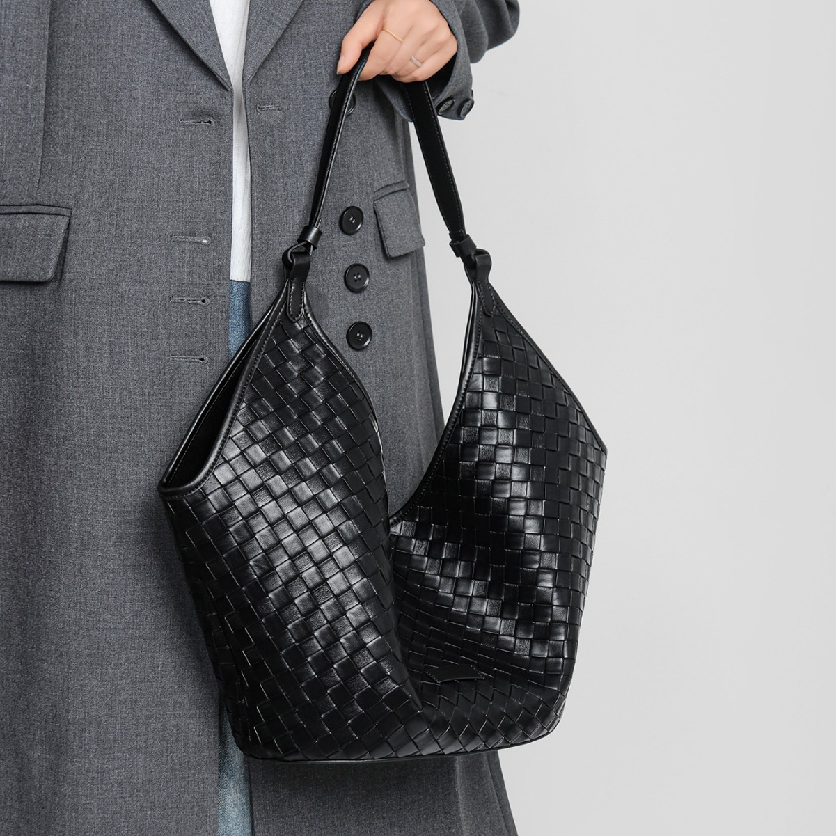 韓国のニッチな高級感あるショルダーバッグ、脇の下に挟む斜め掛けバッグ、レディース大容量トートバッグ、高級感のある本革製レディースバッグ