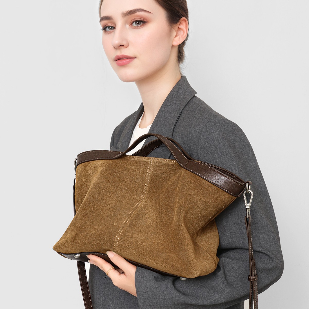 hobo女包高级感秋冬麂皮大容量真皮托特包简约百搭慵懒斜挎通勤包