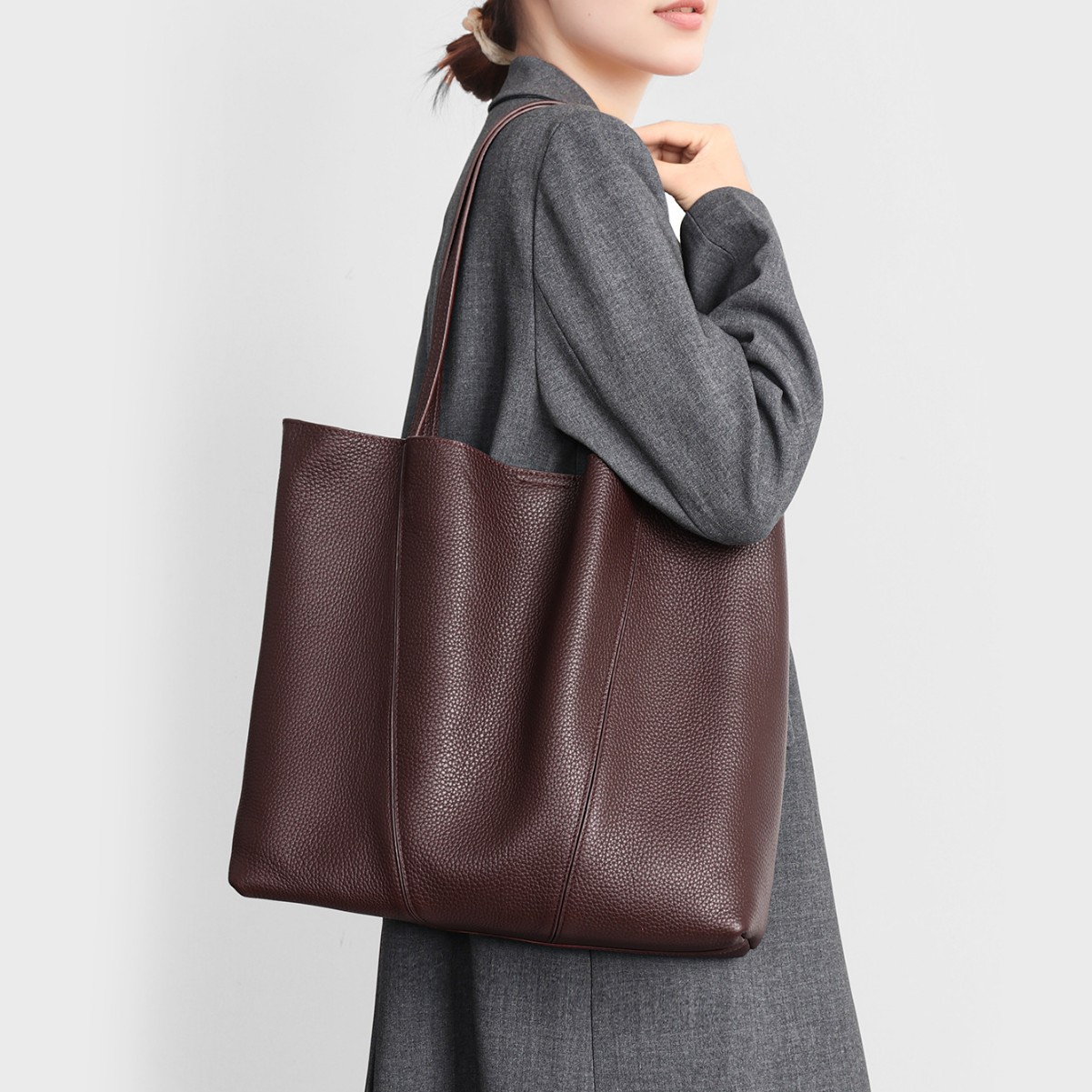 托特包女慵懒风购物袋上班通勤大容量女士单肩包休闲真皮女包