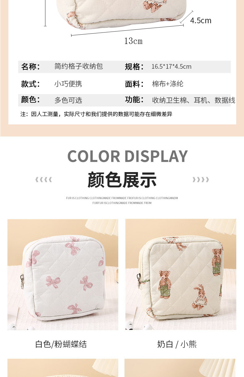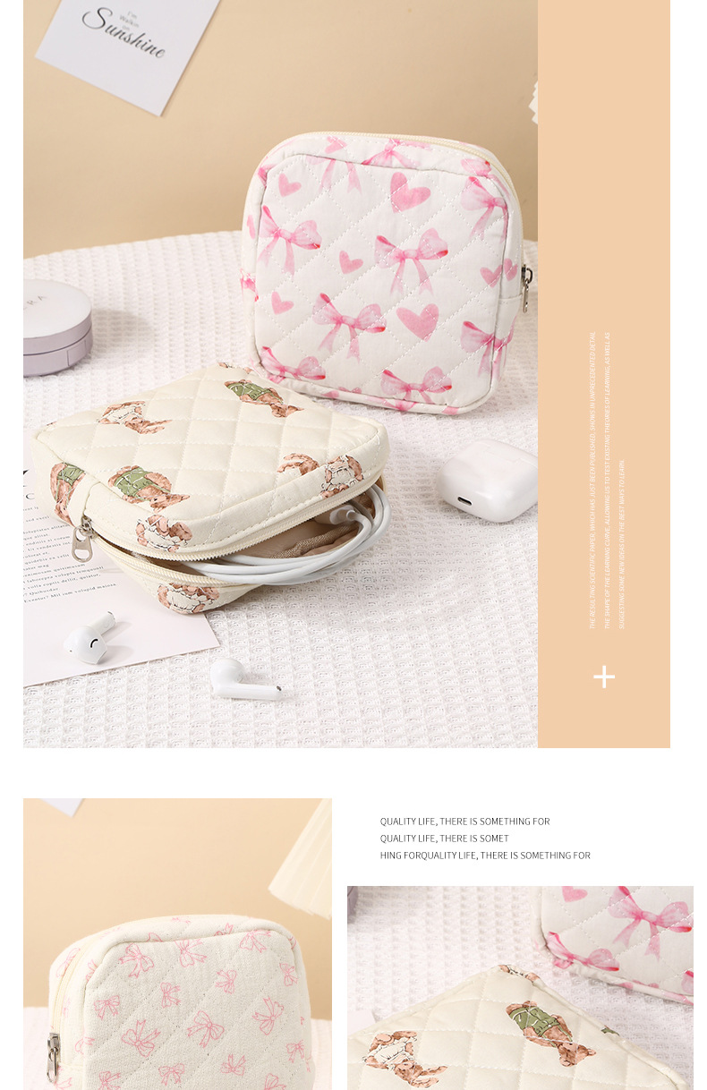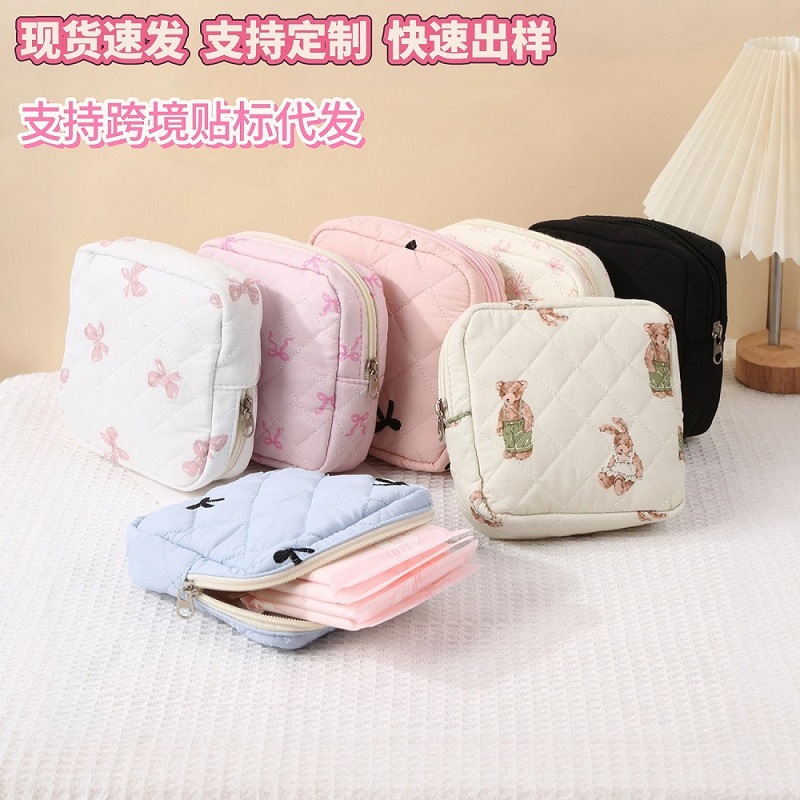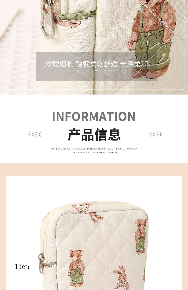 新しいキルティング加工のクマ柄花柄口紅入れ、イヤホン、データケーブル、小銭入れ、生理用品、化粧品、化粧ブラシ入れ