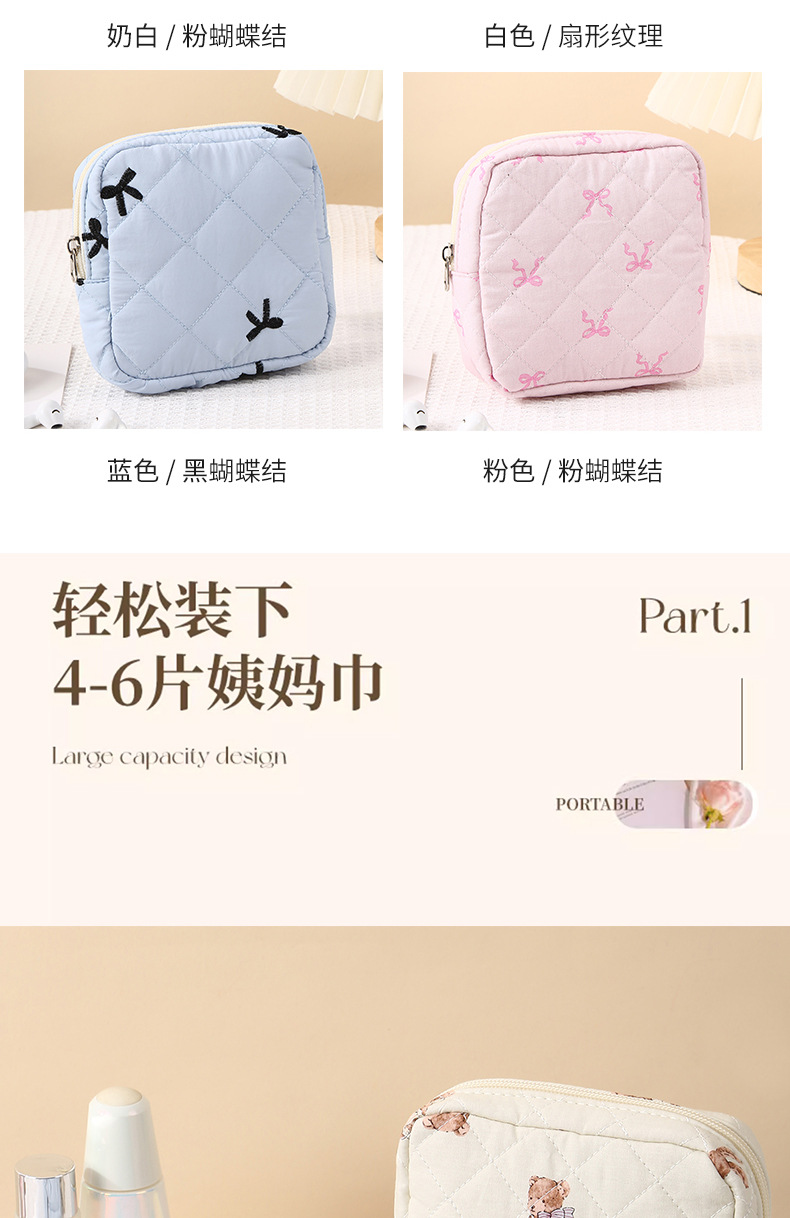 新型キルティング女性用生理用品収納バッグ、大容量で見た目も美しい、イヤホン・データケーブル収納バッグ、生理用品バッグ