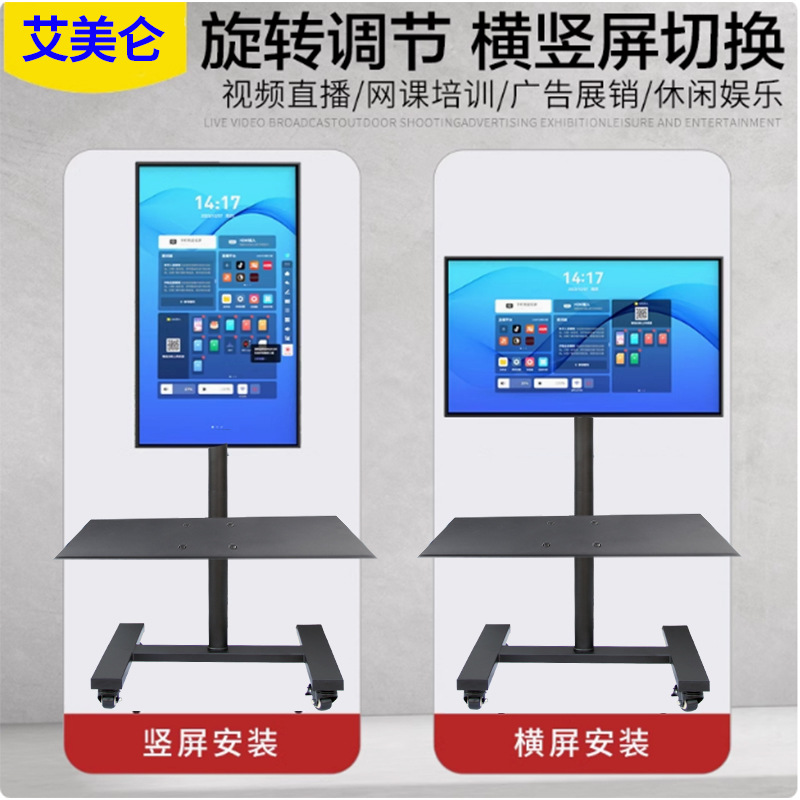 コンピュータのディスプレイの床のスタンドの横の縦のスクリーンは12-32インチの液晶のディスプレイの移動の棚のプーリを回転します。