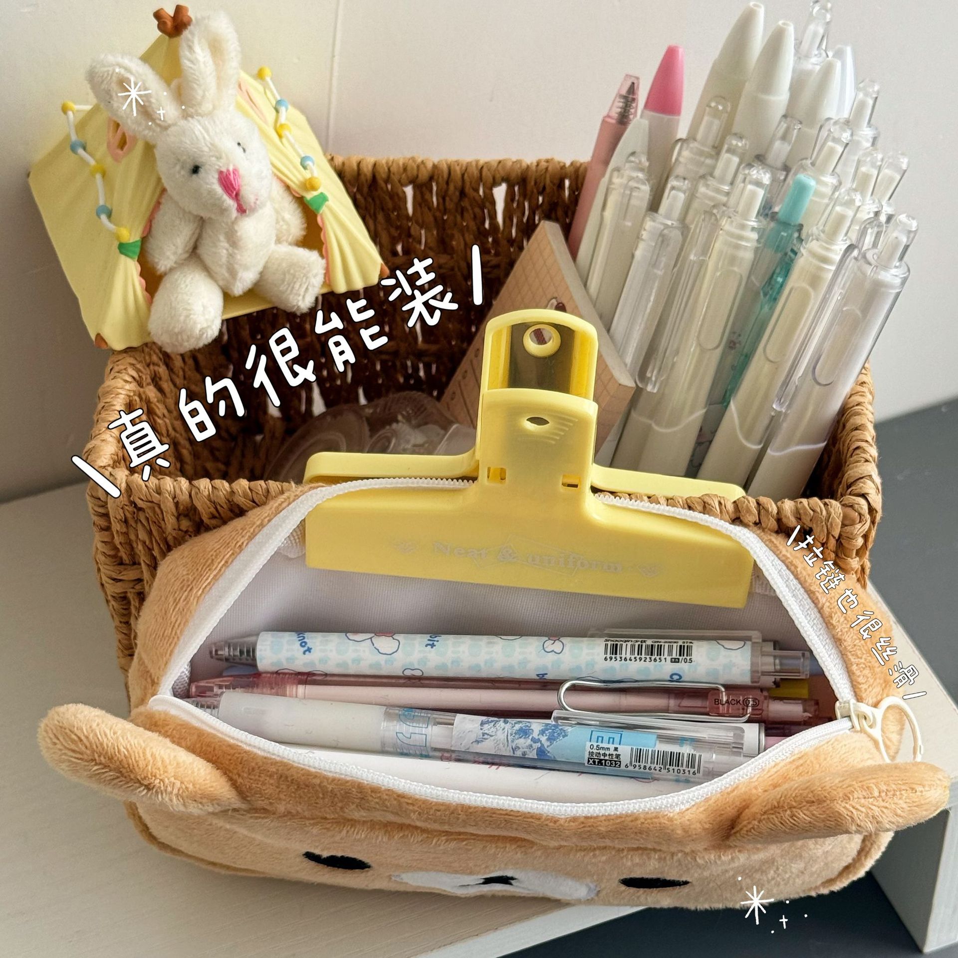 Ciカワ可爱いウサキぬいぐるみ袋高颜値ジイ化粧ポーチ学生漫画文房具小八収纳