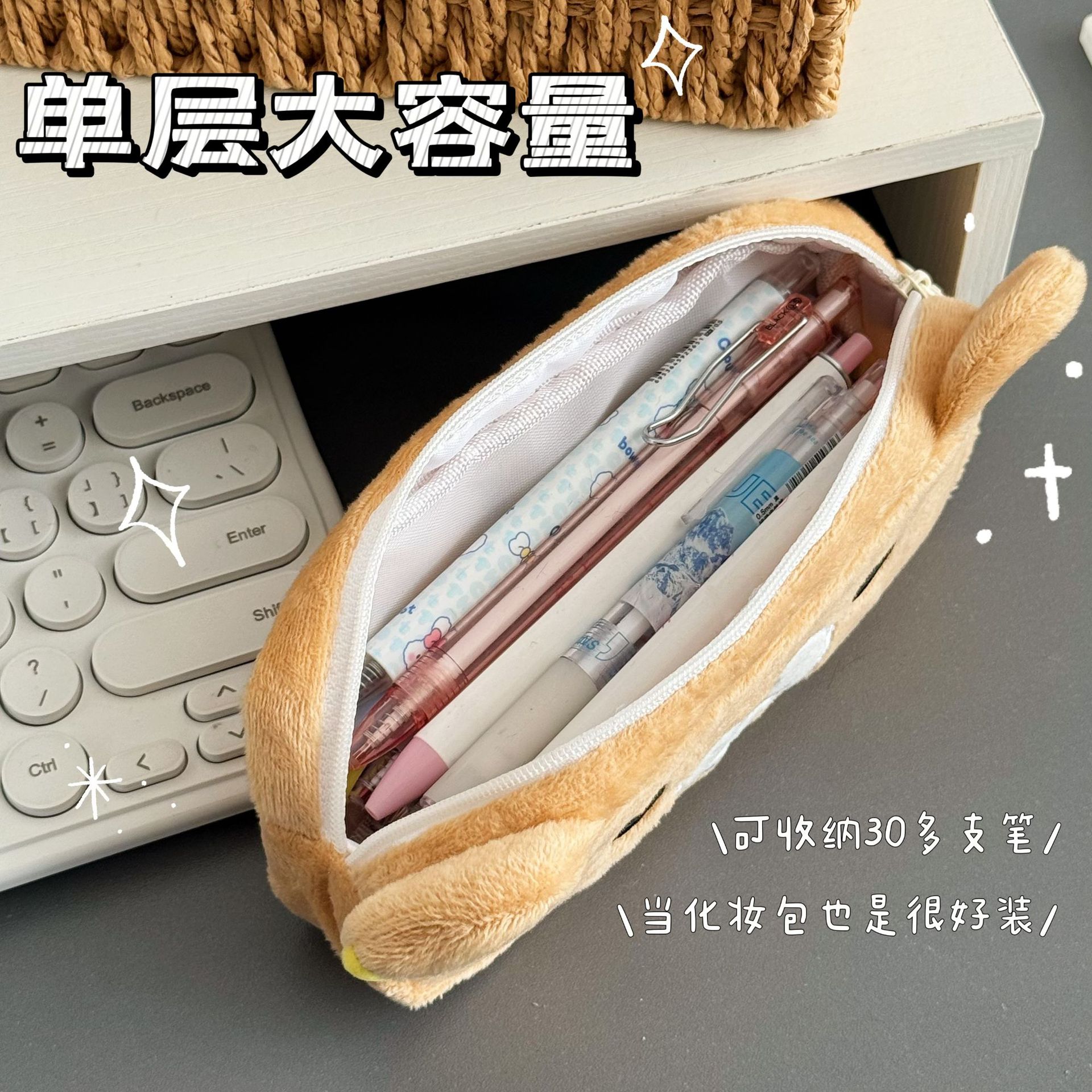 かわいいぬいぐるみの耳の子犬の筆袋ins大容量アニメ動物化粧バッグ学生文房具袋収納