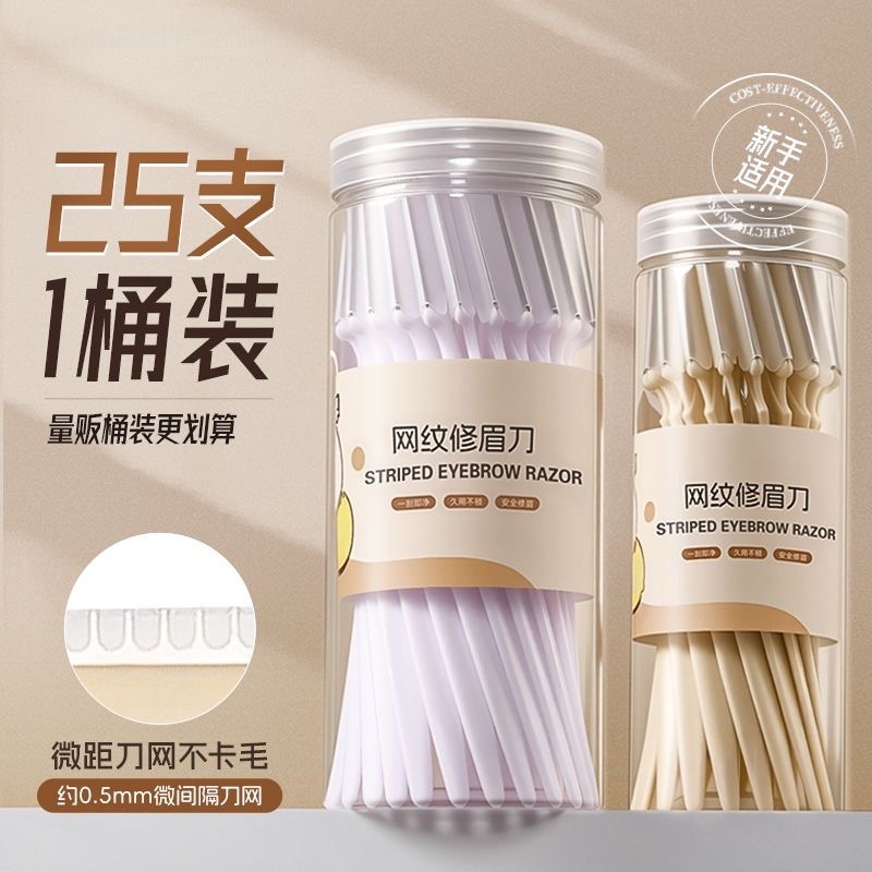 电商爆款修眉刀25支桶装刮眉毛工具网纹设计安全防刮伤院线款眉刀