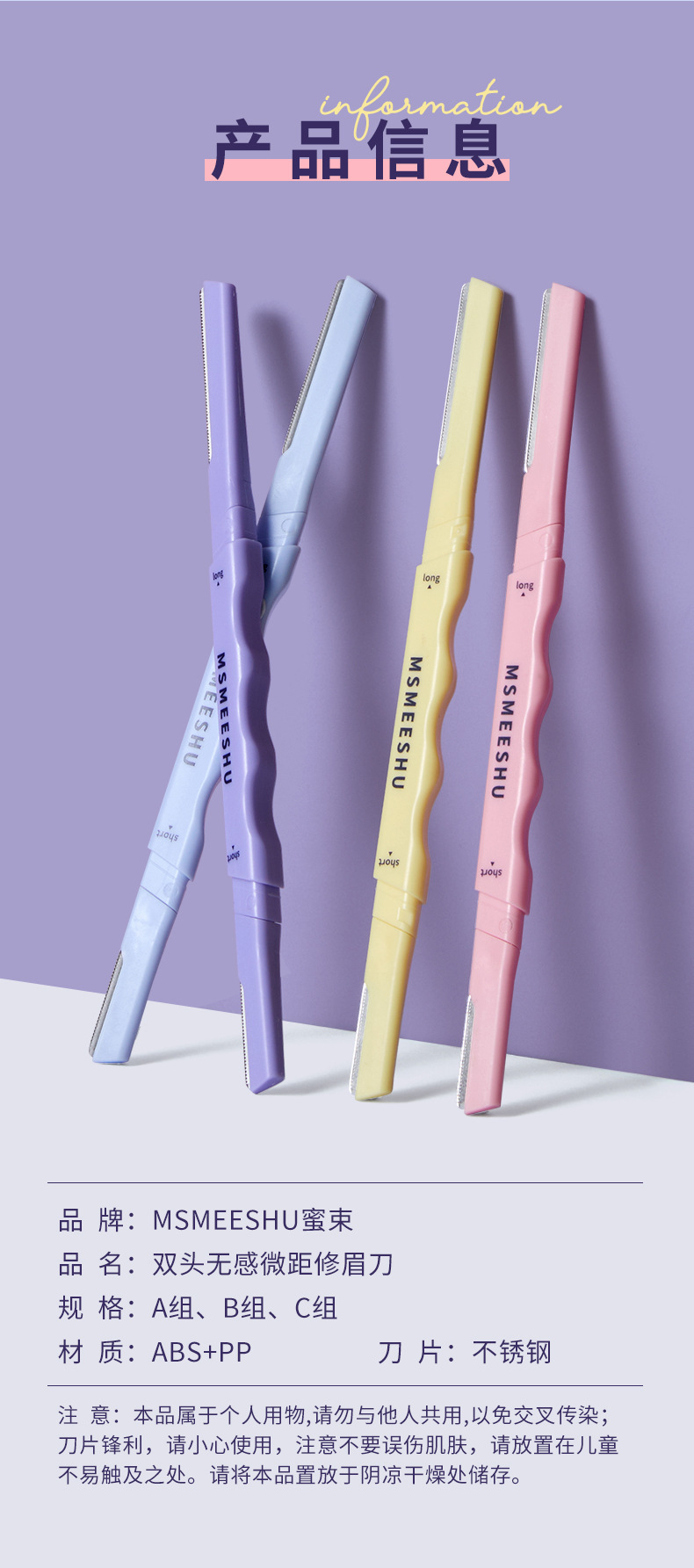【1袋2本】蜜束双頭修眉刀鋭利で滑らかなマクロ修眉刀マクロ安全型剃毛携帯