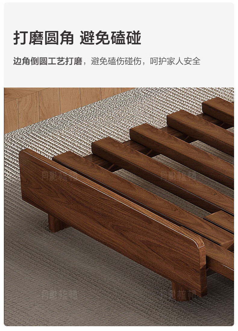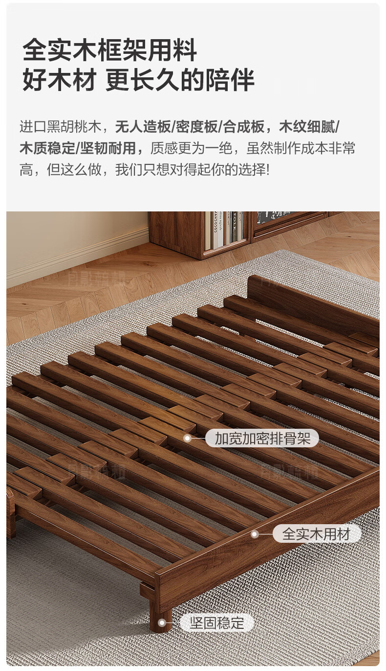 胡桃木全実木床ほぞ構造1.8メートルツインベッド現代シンプル1.5メートルシングルベッド工場直販