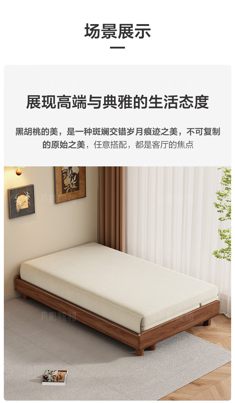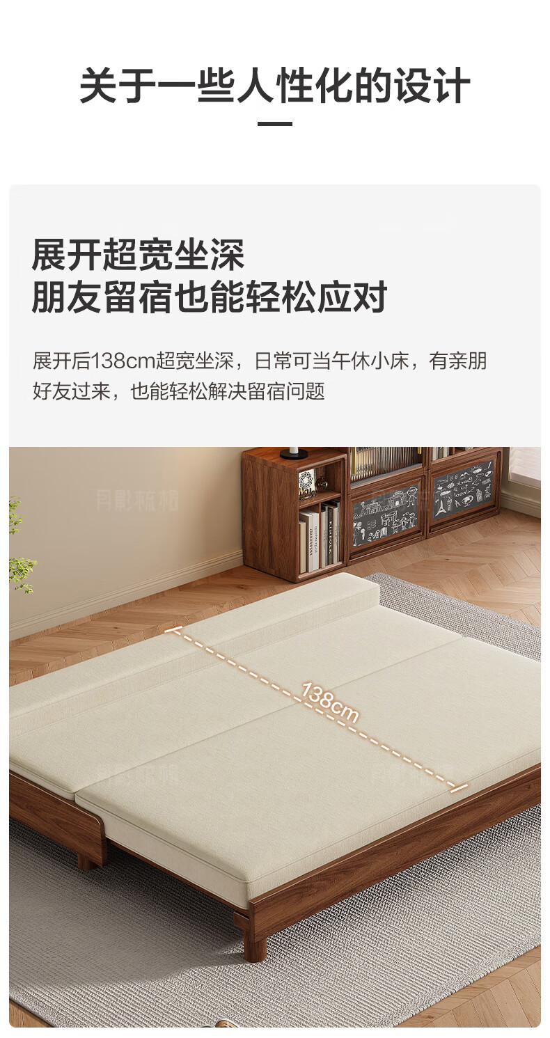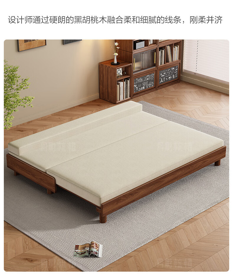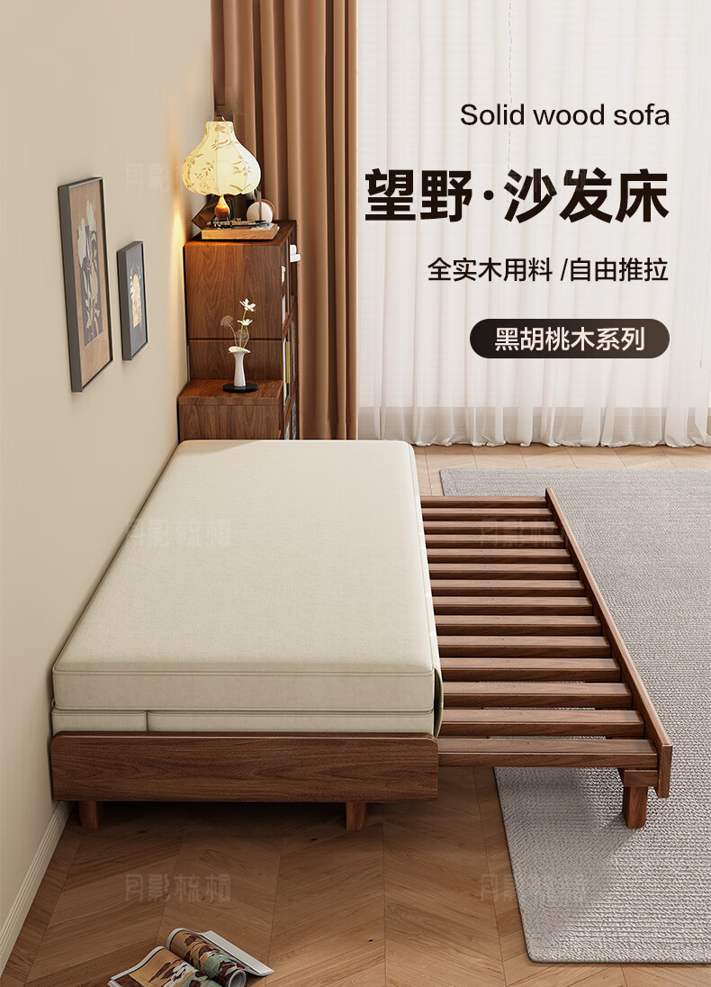 新しい中国風の大小のリビングルームブラックウォールナット無垢材引き出し式ソファベッド折りたたみベッド多機能伸縮ベッド組み合わせ