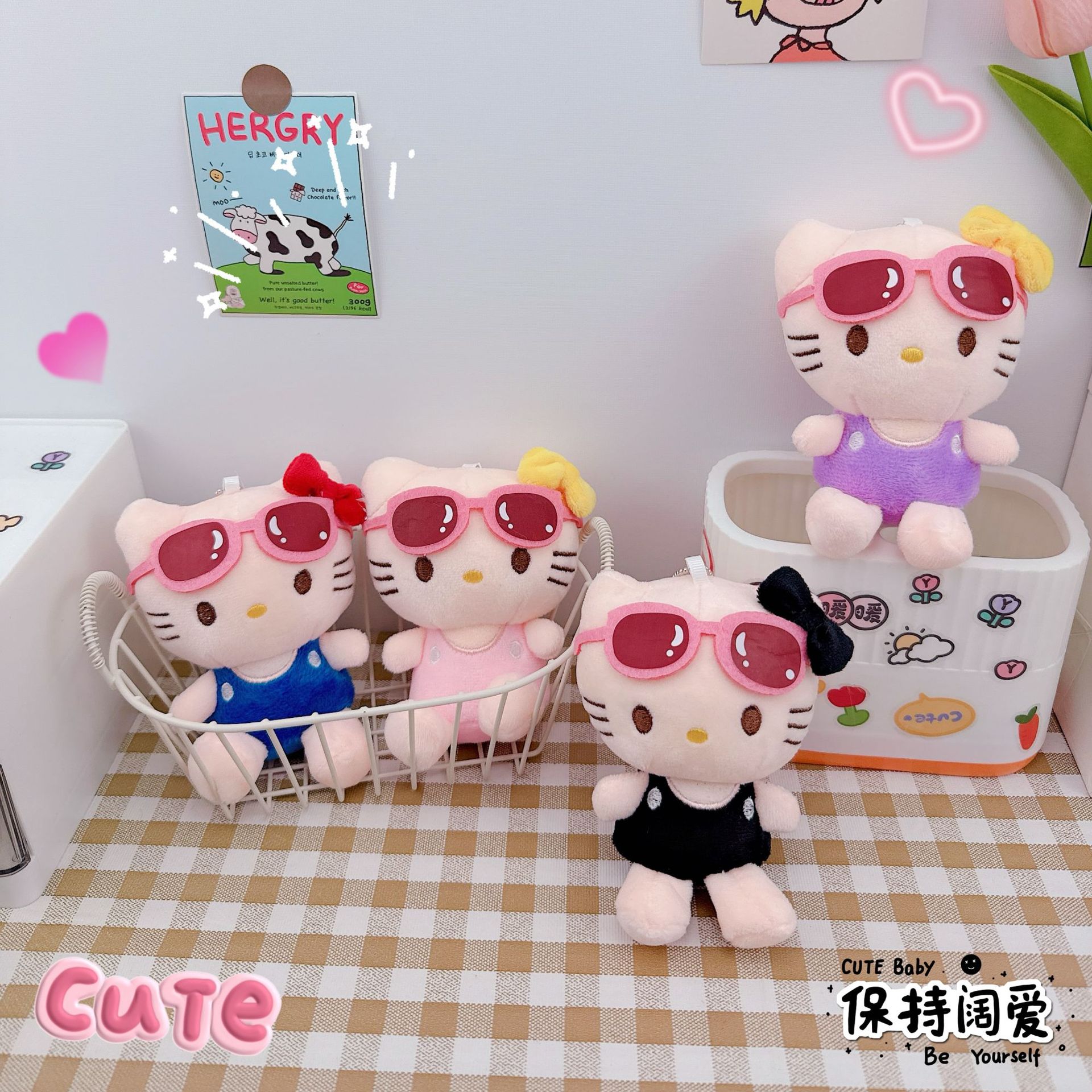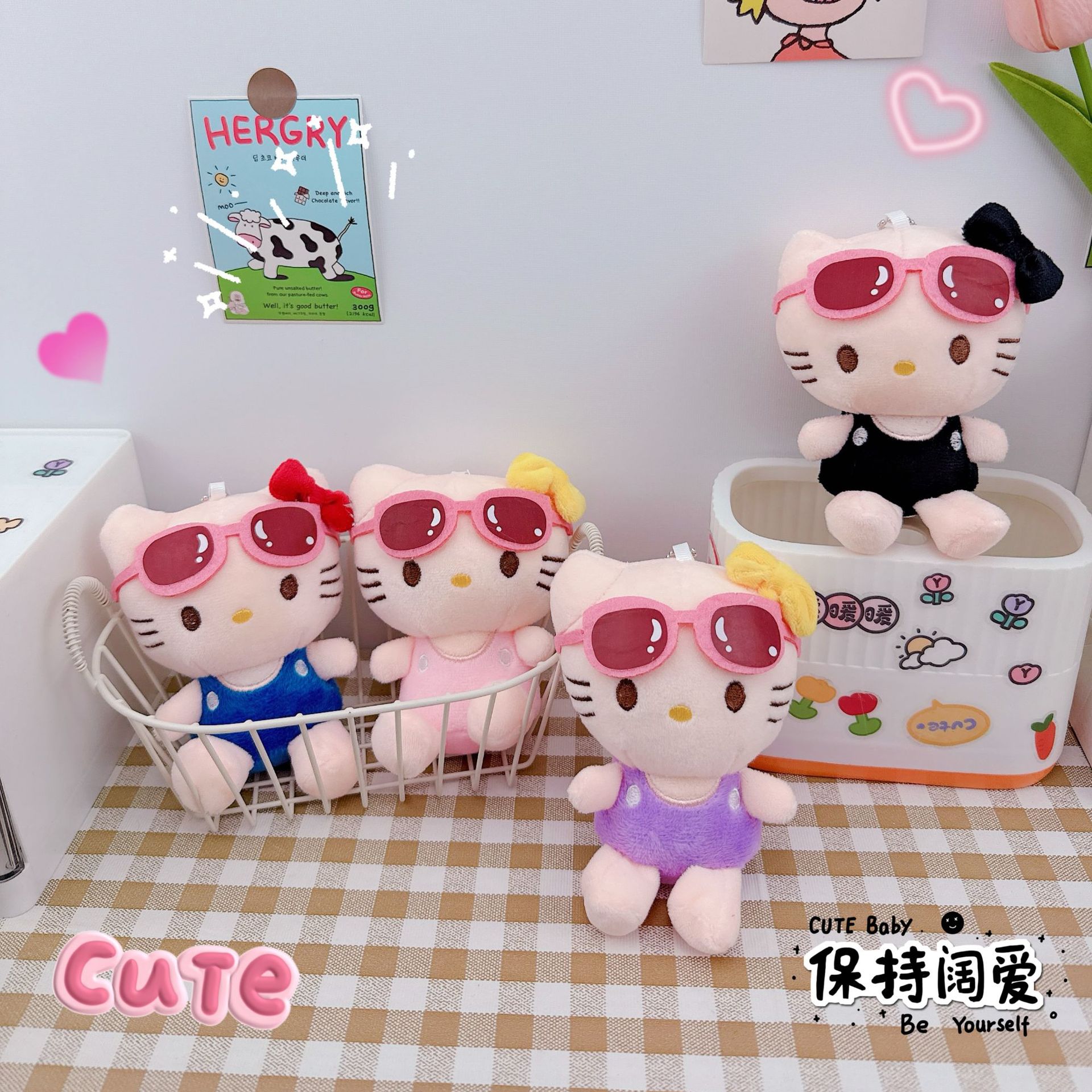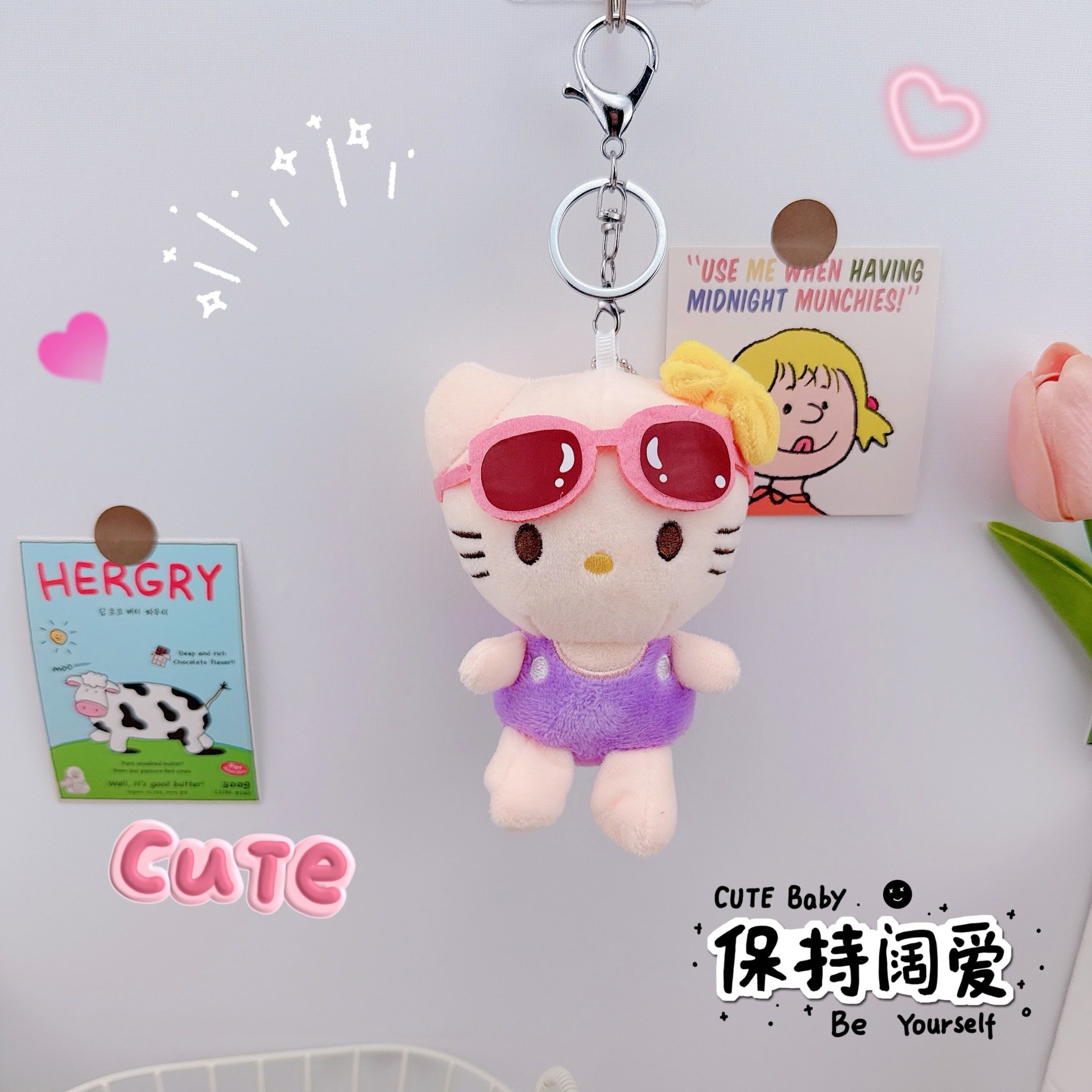 ハワイ水着サングラスkt猫キーホルダークリエイティブビキニケイト猫ストラップカップルかばんストラップ