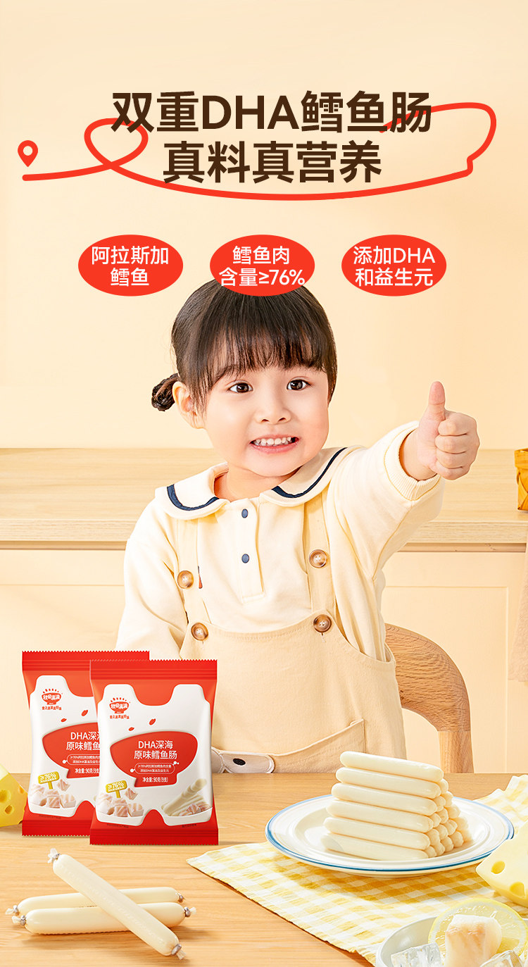 力诚鳕鱼肠宝宝孕妇儿童健康解馋深海味零食深海三文鱼火腿肠80g