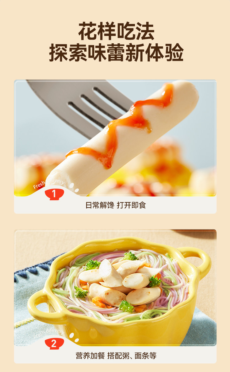 工場直販 Licheng タラソーセージ 子供用スナック 健康的なスナック 栄養価の高い離乳食 ハムソーセージとミートソーセージを追加
