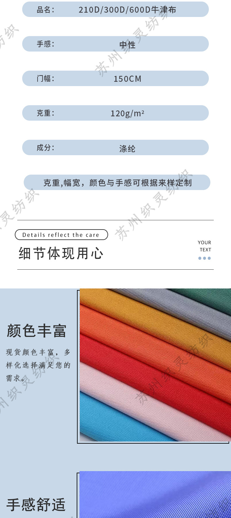 600D防水PU涂层牛津布帐篷 天幕 遮阳蓬 童车面料厂家直供