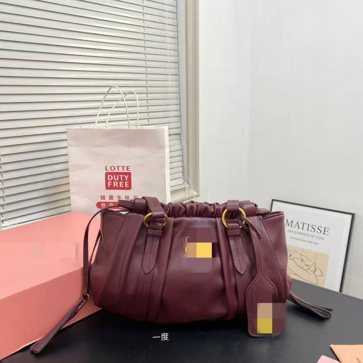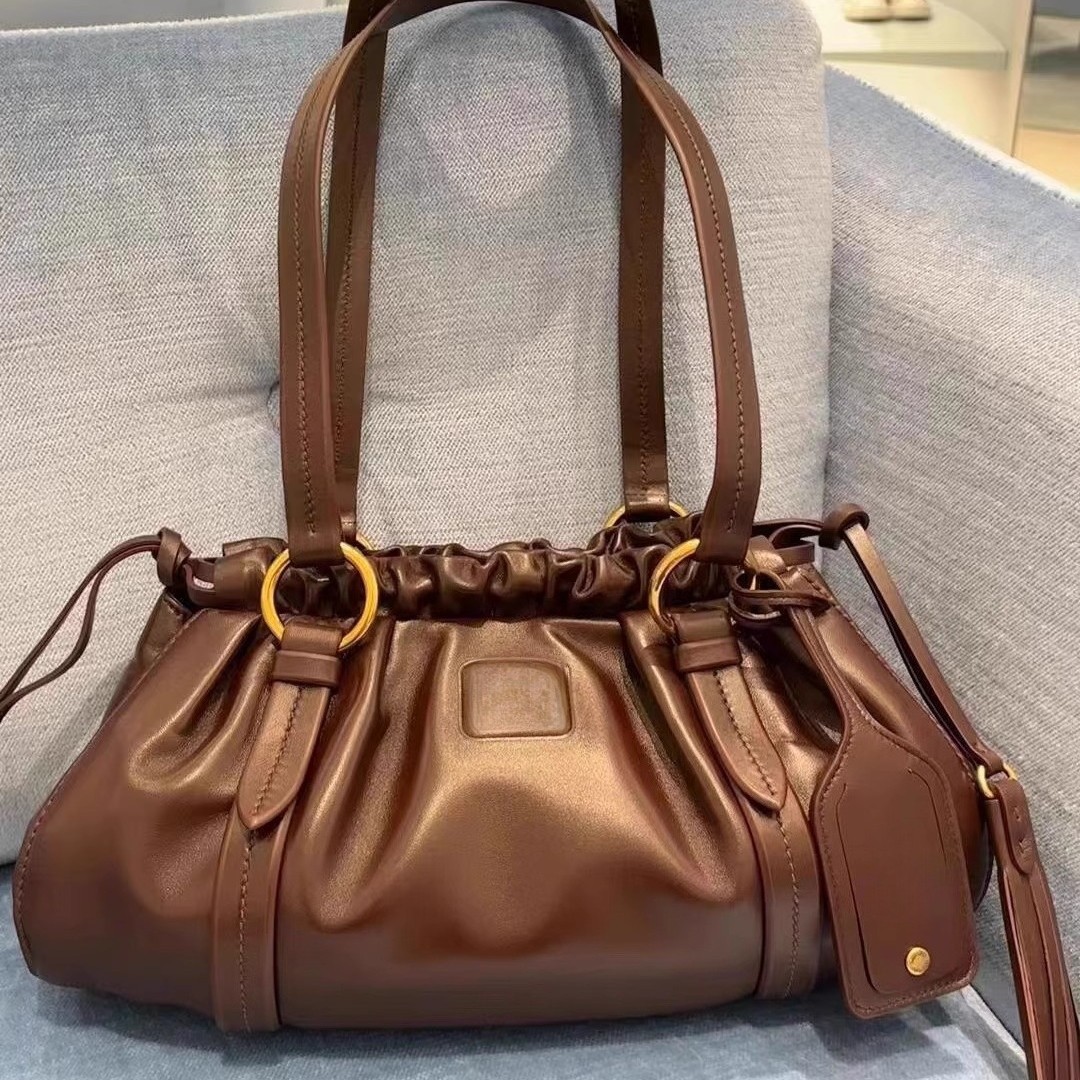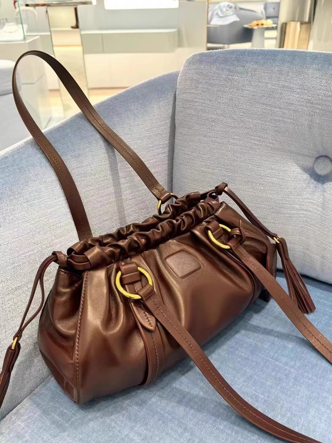 Miu缪joie*appa真皮女包褶皱抽绳云朵包25新款复古单肩包手提包潮