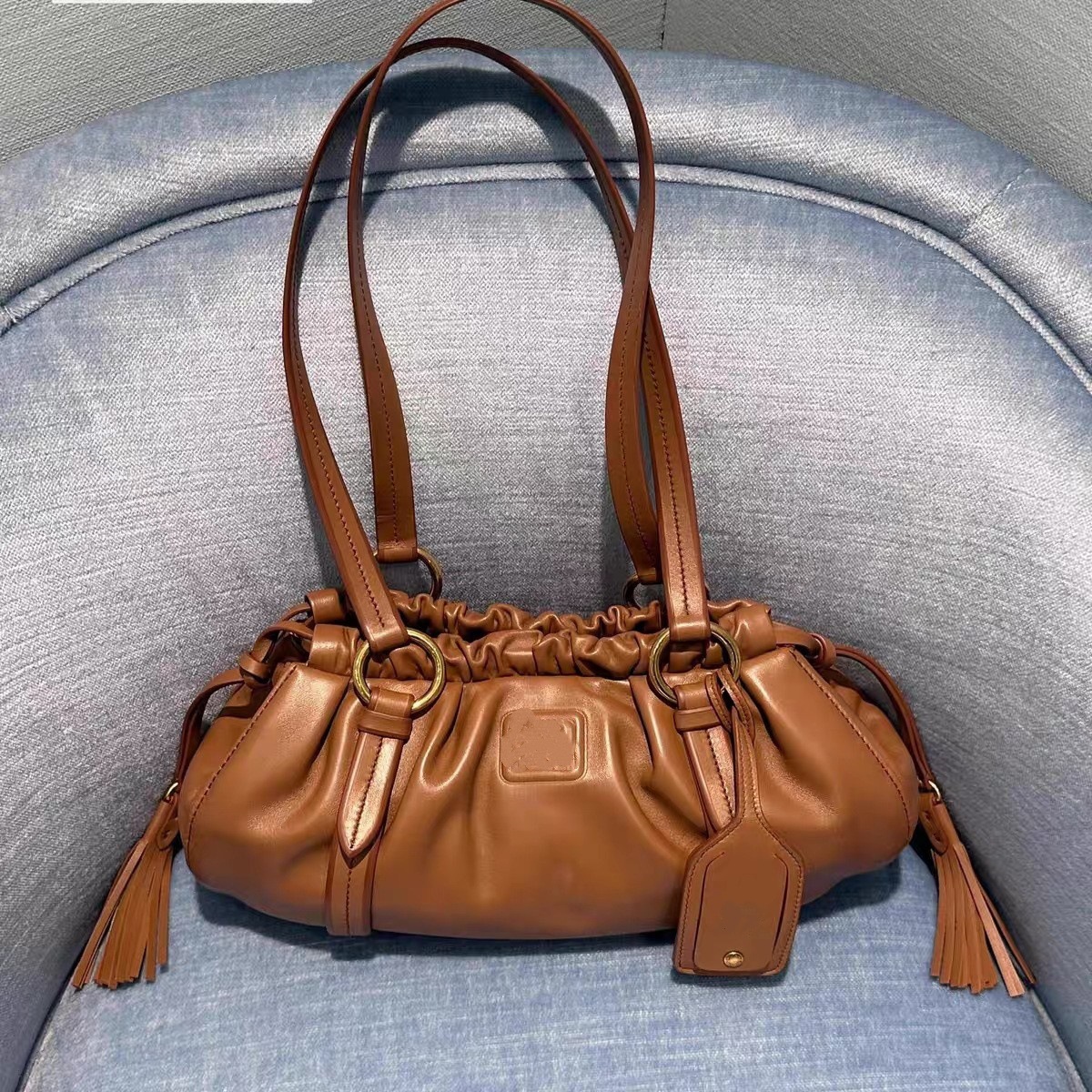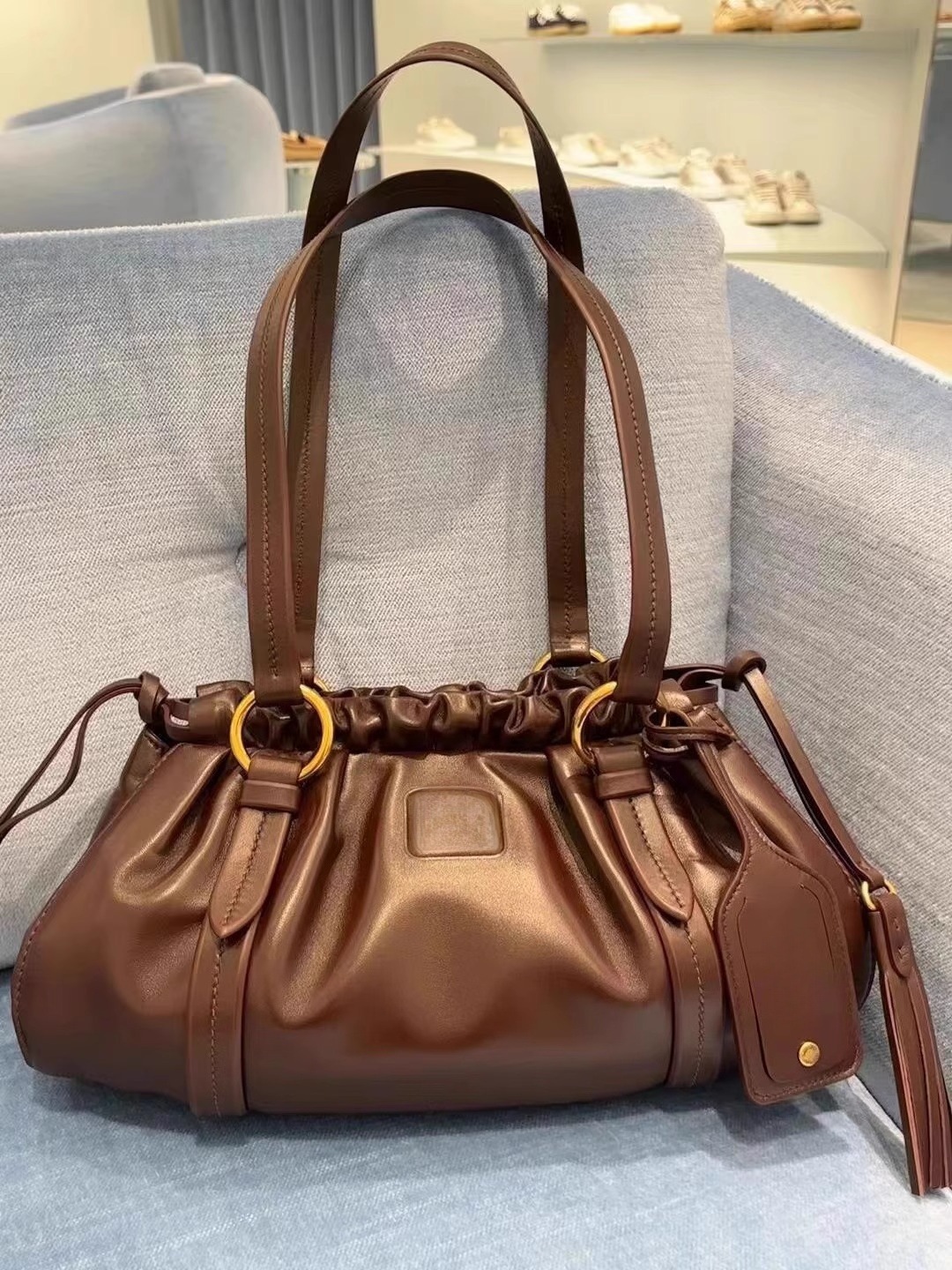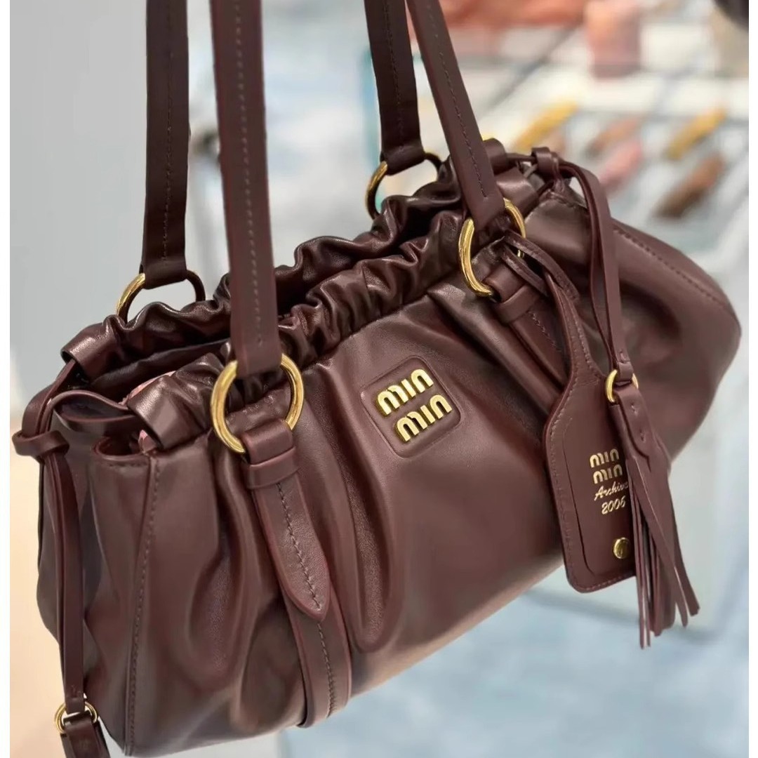 Miu缪joie*appa真皮女包褶皱抽绳云朵包25新款复古单肩包手提包潮