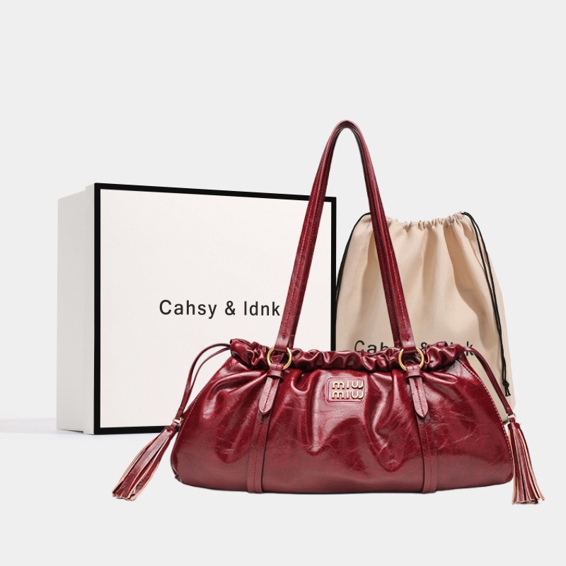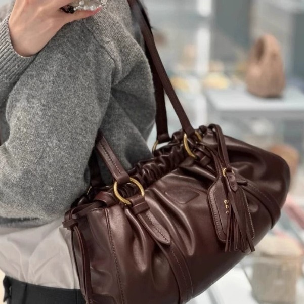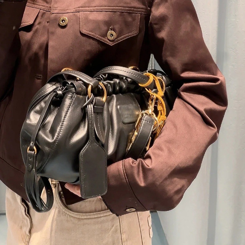 miu家joie*appa真皮女包褶皱抽绳云朵包25新款复古单肩包手提包