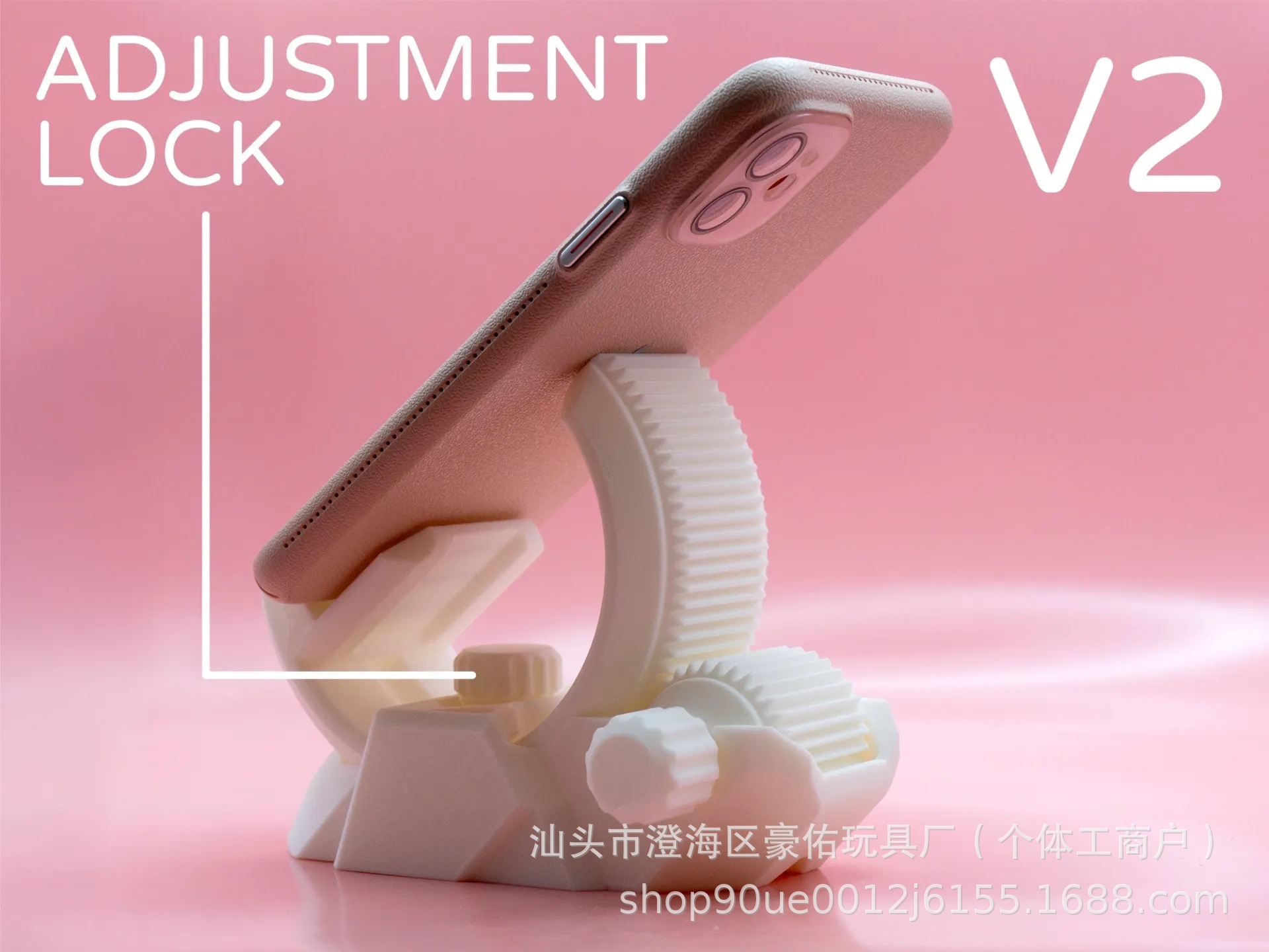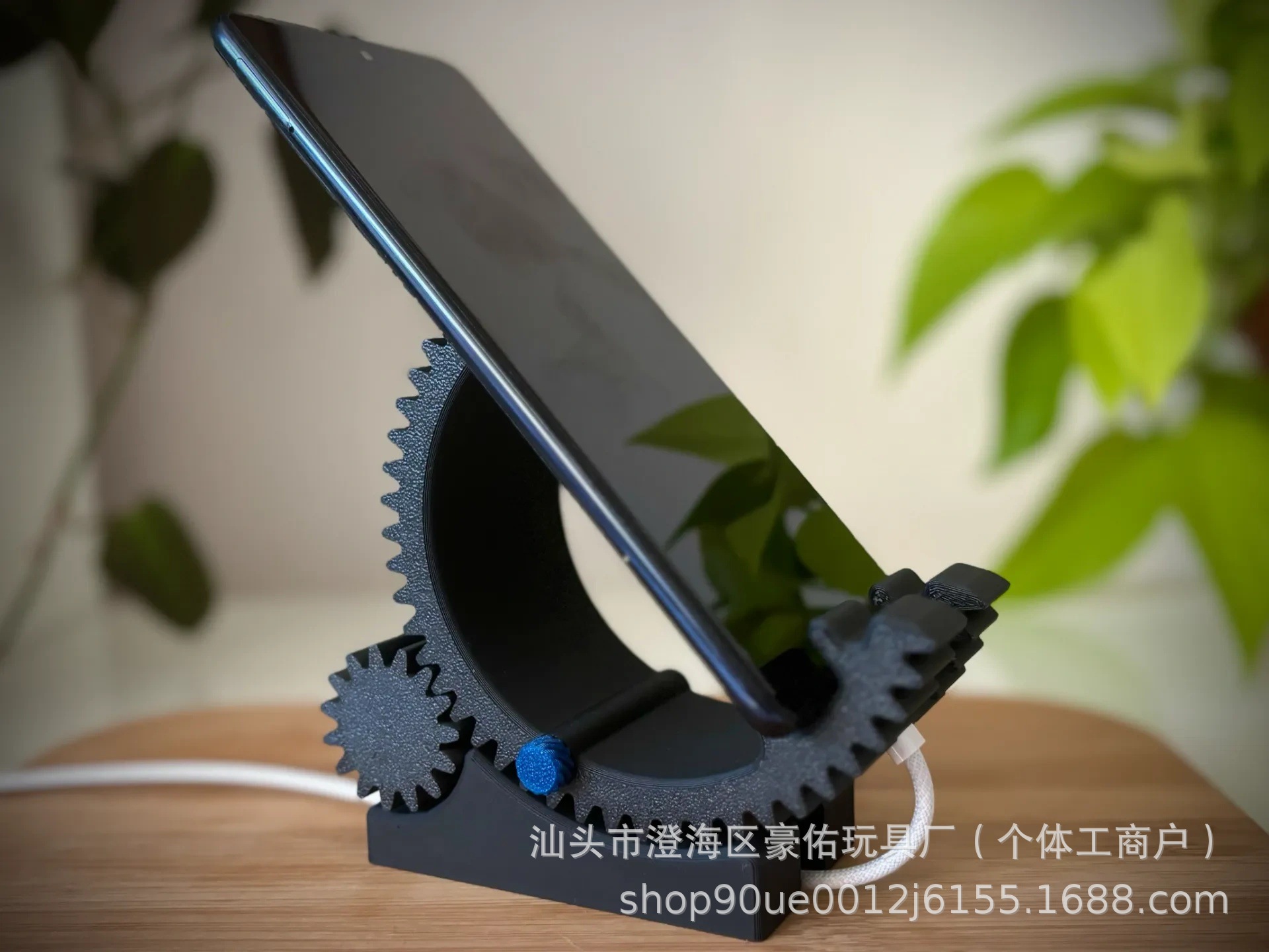 新品3dプリンテッドヘリンボーンギアフォンスタンドデスクトップギア携帯電話ホルダー