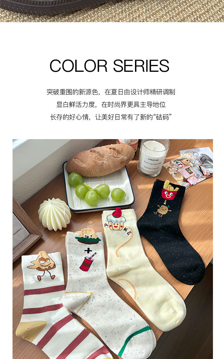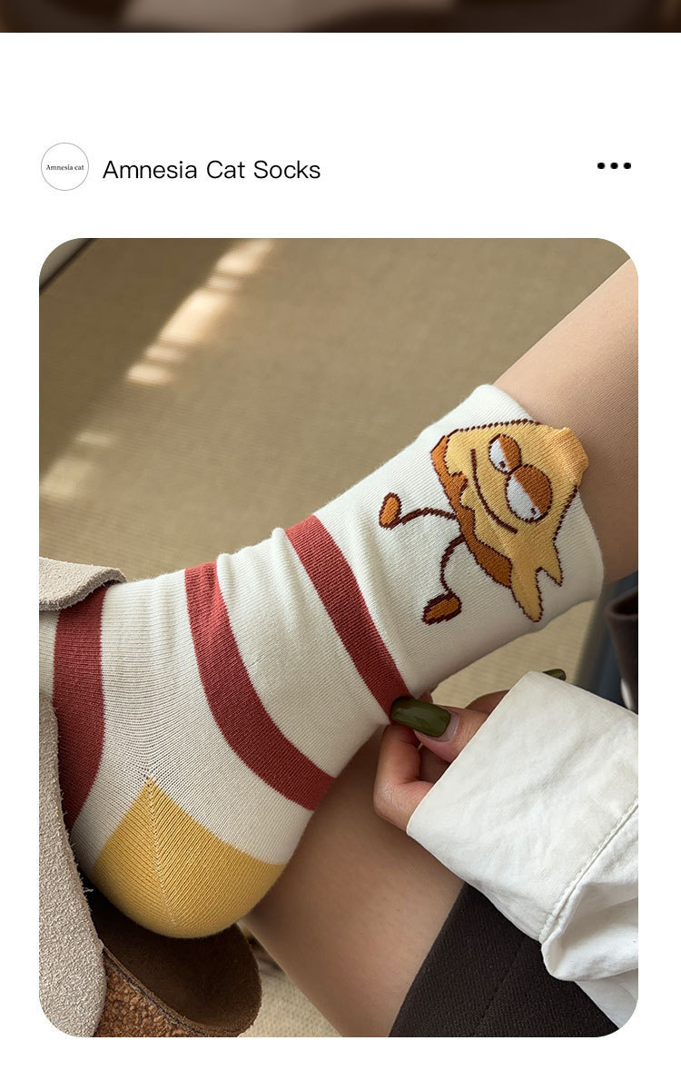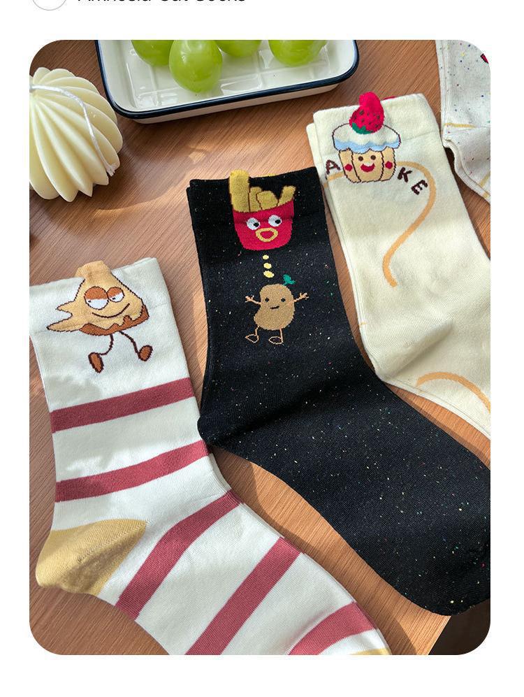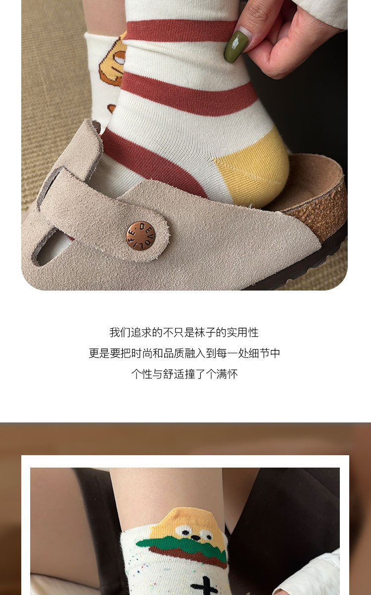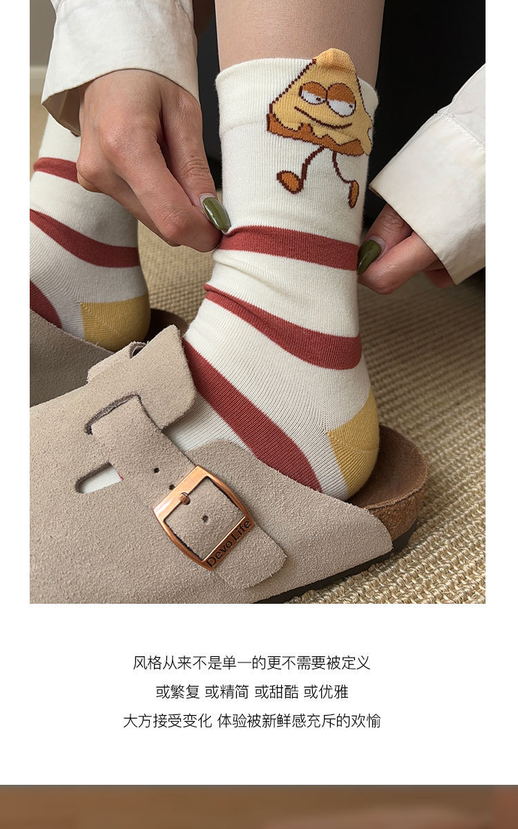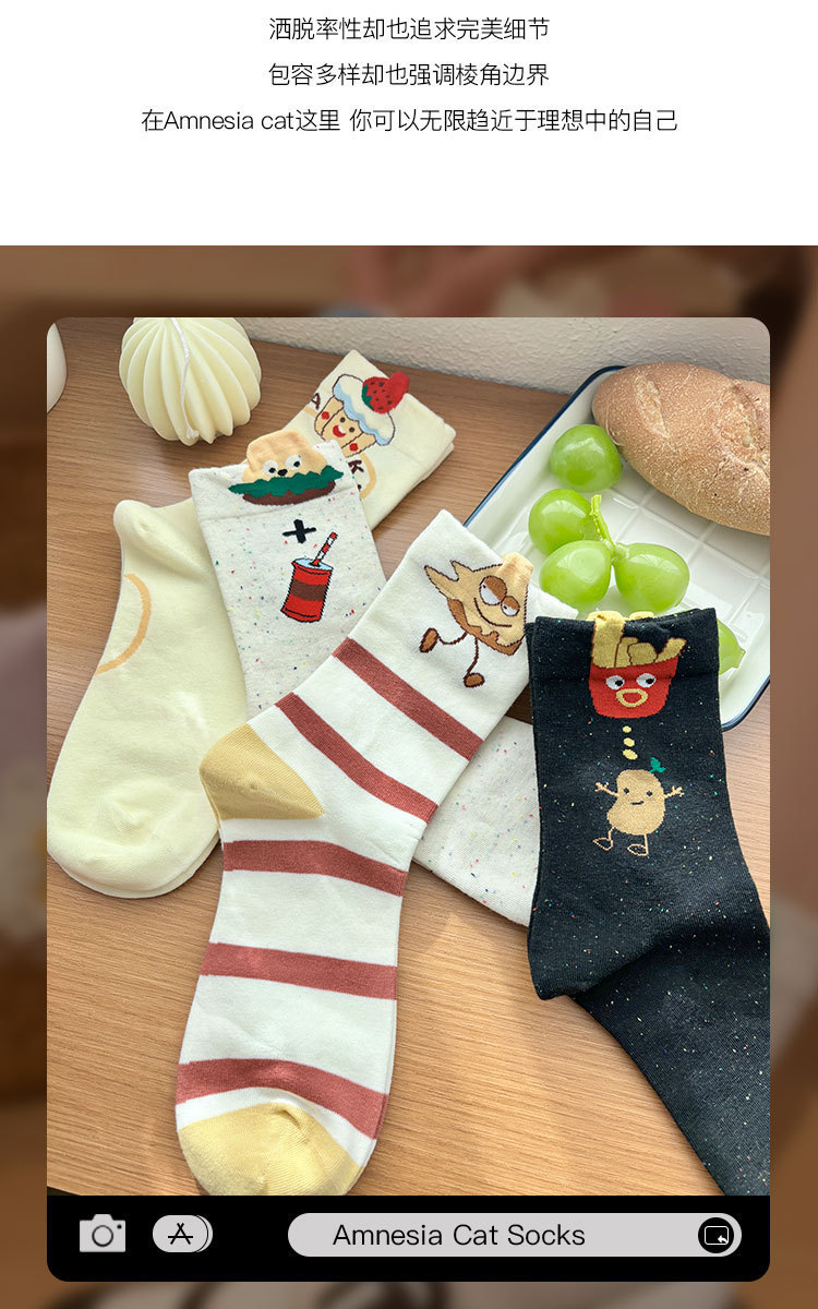 夏の靴下の趣味のアニメのポテトの靴下の女性の中筒の靴下の潮春と秋の薄いタイプの日本のかわいいストライプのハンバーグの靴下