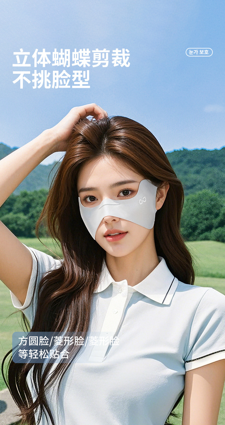 女性用の新しい夏の日焼け止めマスク、アイスシルク、通気性、屋外用、紫外線防止、目の保護、立体的なメイクアップなし XKZ73