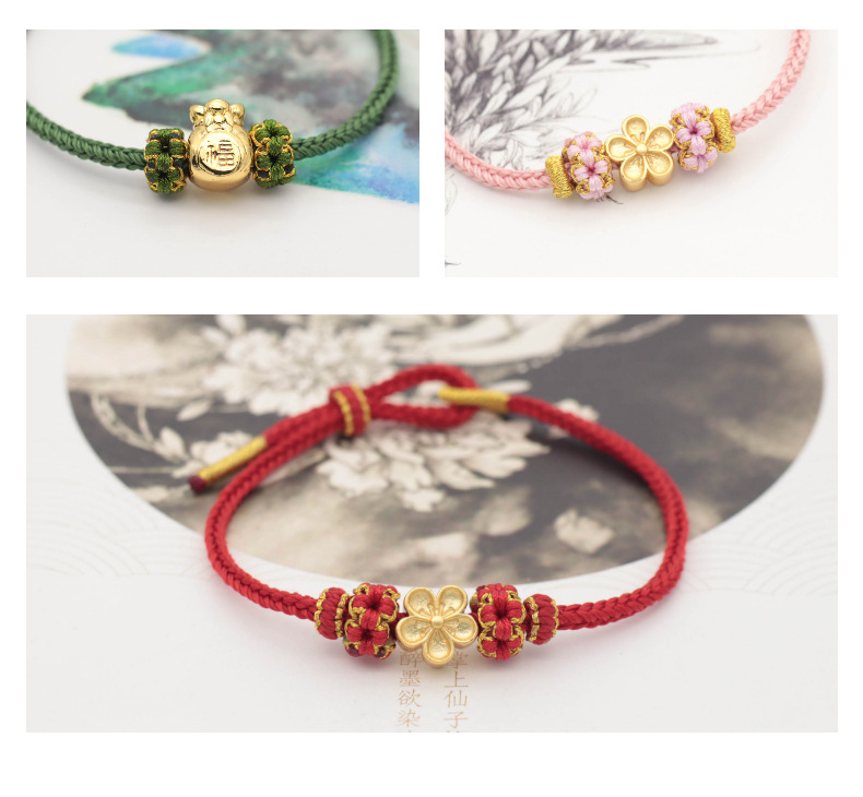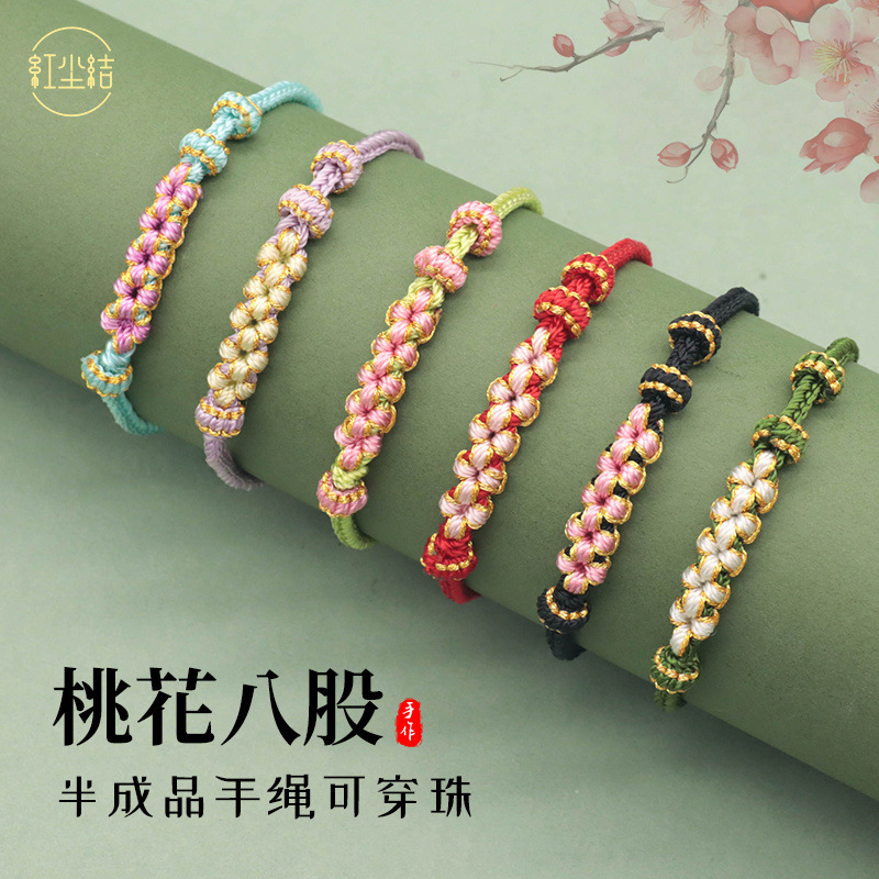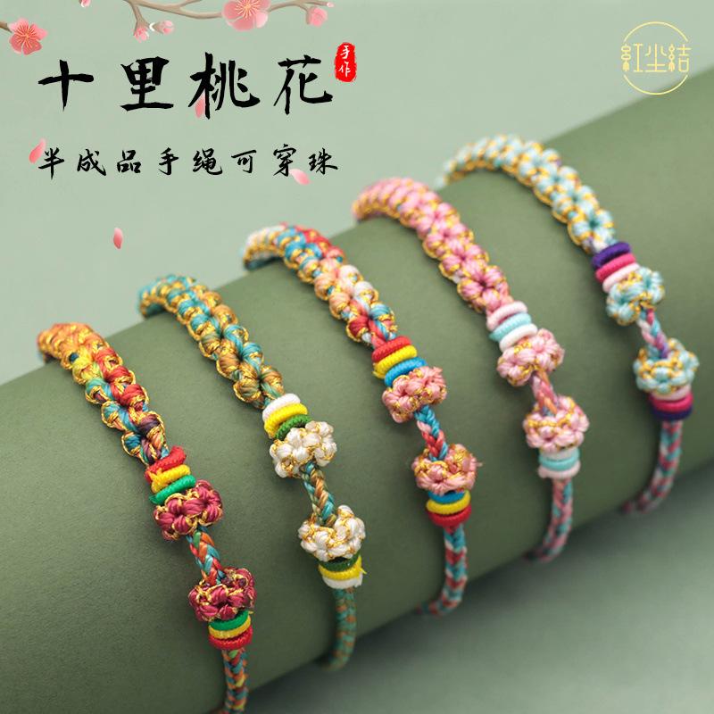 精编手工编织股线桃花结手绳手串手链diy隔珠配饰材料包饰品配件